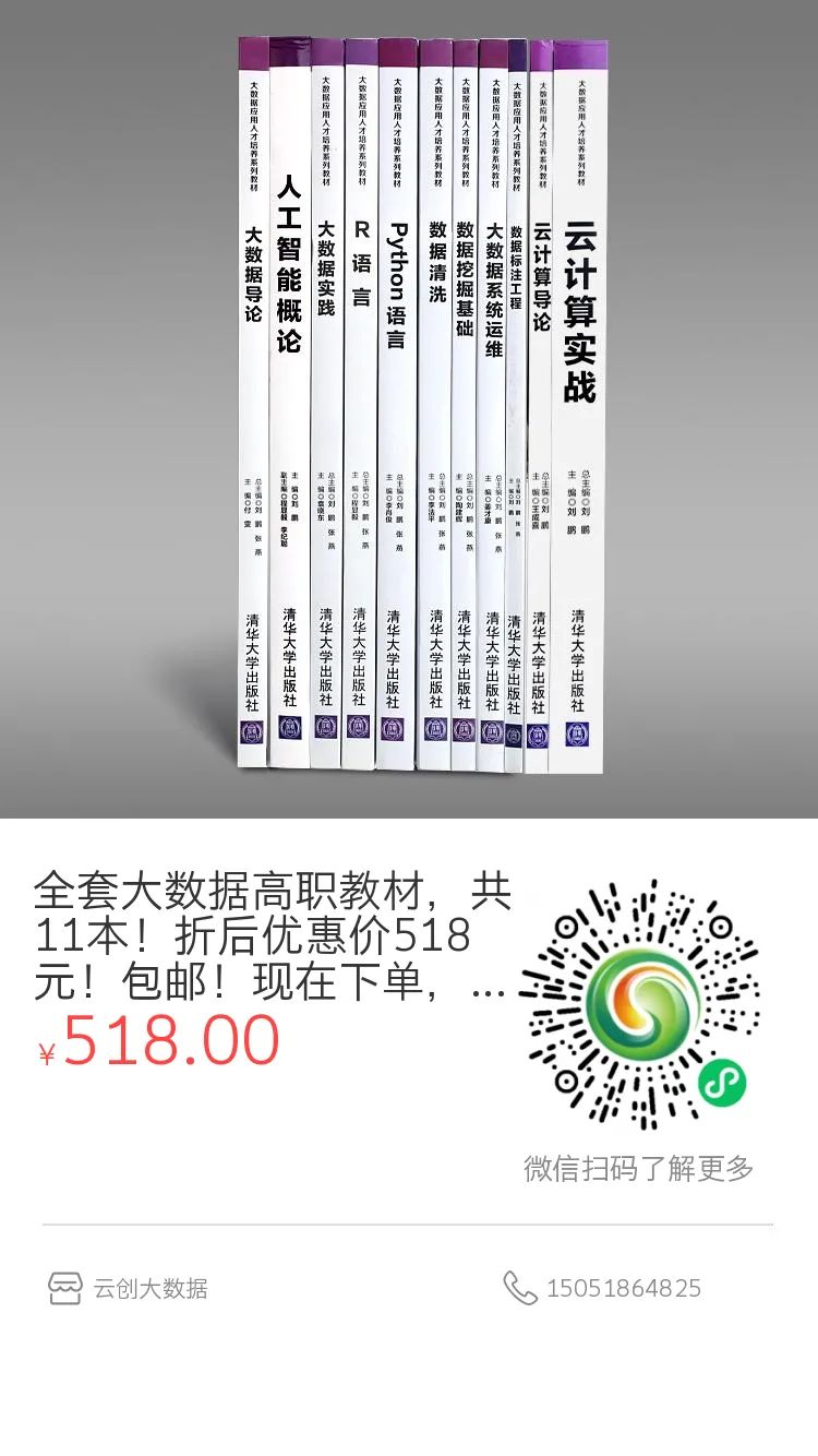 清華大學出版社王編輯如此評價:“劉鵬教授的這套教材選題比較獨特,并考慮到未來高職高專和應用型本科大數據人才的就業需求情況,從而選擇了一些非常有特色的選題?!?/span>