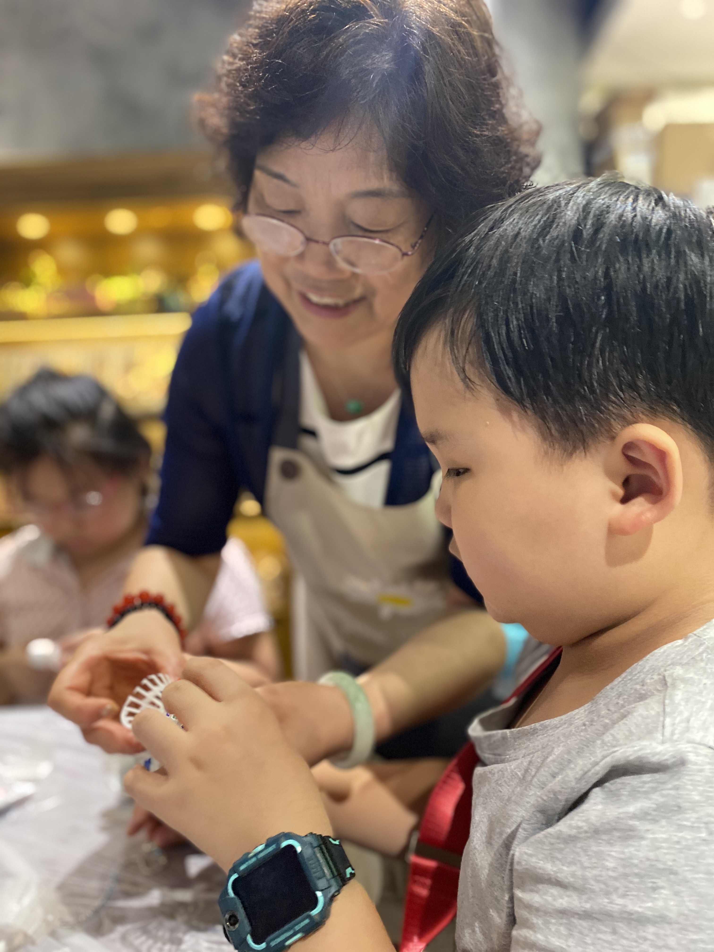 孩子們首先參觀了匠人店鋪,通過觀看產品展示、聆聽工作人員講解,了解到了專心、精心、細心的匠人匠心文化。