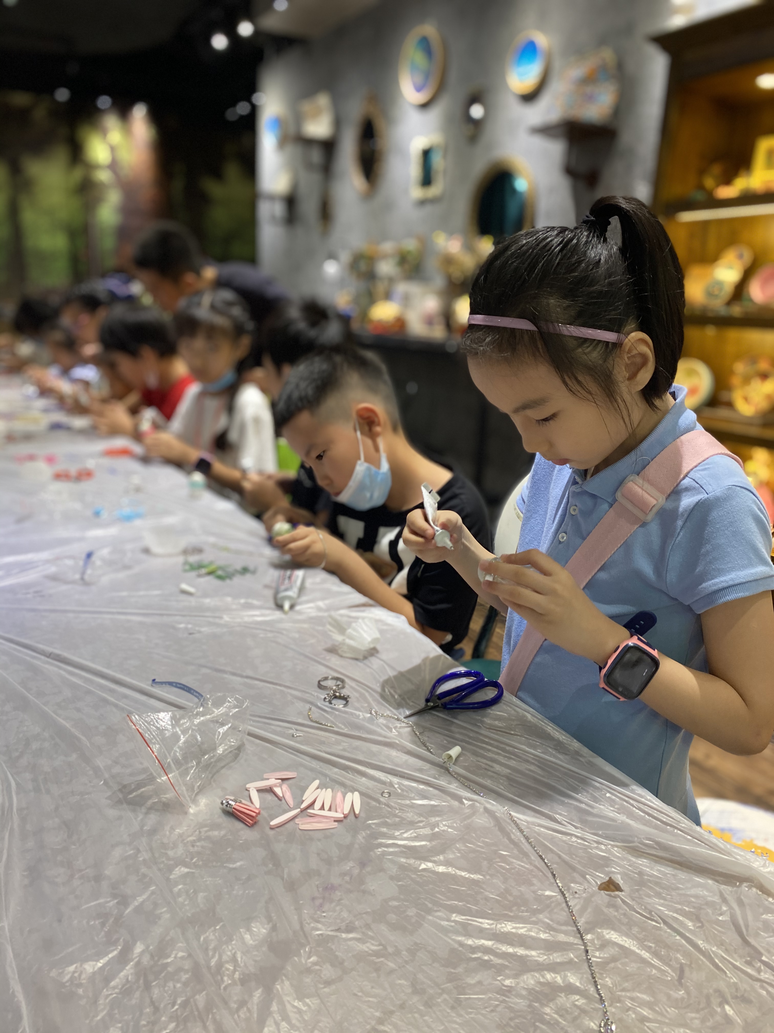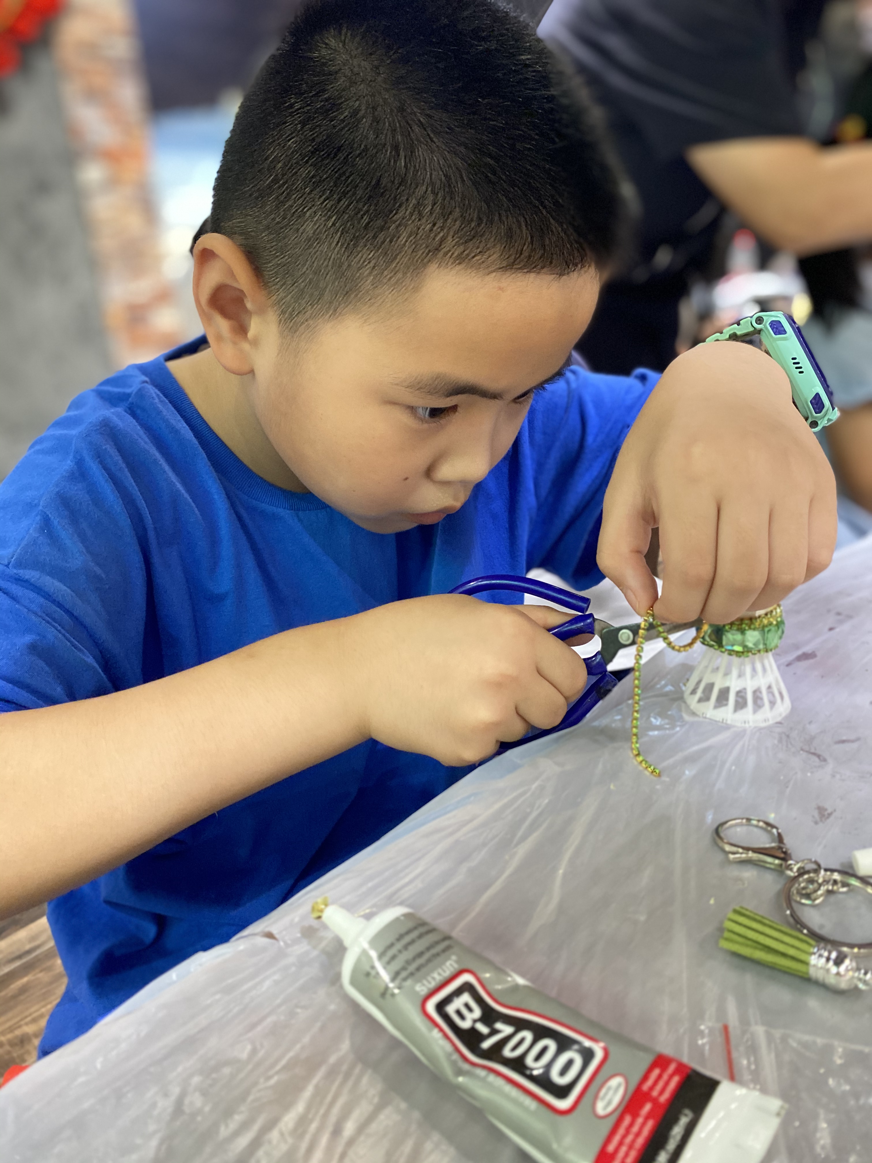 在集趣坊——手工作坊進行的羽毛球鑰匙扣制作受到了孩子們的熱烈歡迎。在手工老師的指導幫助下,孩子們發揮出出彩的動手能力,制作出一個個精美的鑰匙扣。