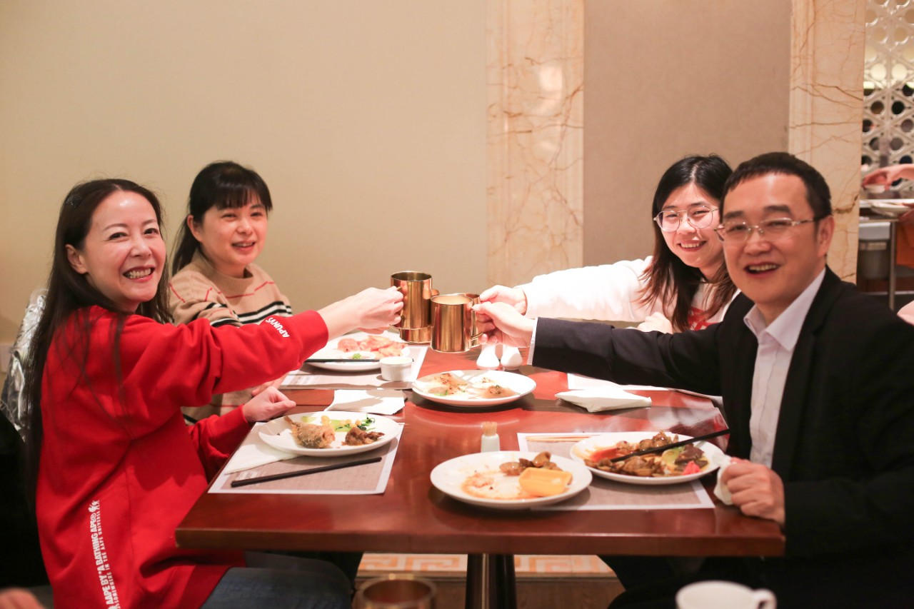 各色海鮮,中西餐食,甜點蛋糕······美食當前,大家大快朵頤,舉杯共飲,吃著聊著,清空過去一年的遺憾,聊聊新一年的期許,美好不過如此。