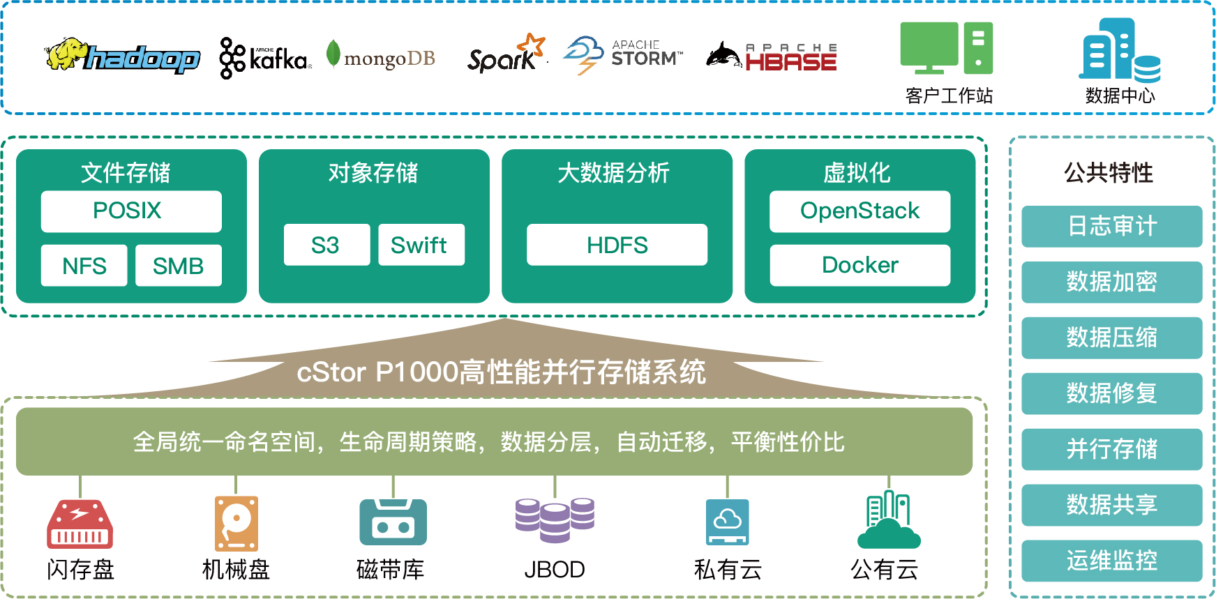 cStor P1000高性能并行存儲(chǔ)系統(tǒng)是一款高性能、可擴(kuò)展、具有全局統(tǒng)一命名空間的并行存儲(chǔ)系統(tǒng),主要面向云、大數(shù)據(jù)、分析、對(duì)象等非結(jié)構(gòu)化數(shù)據(jù)的存儲(chǔ)。廣泛應(yīng)用于高性能計(jì)算、人工智能、大數(shù)據(jù)分析、數(shù)據(jù)整合、數(shù)據(jù)挖掘等場(chǎng)景。