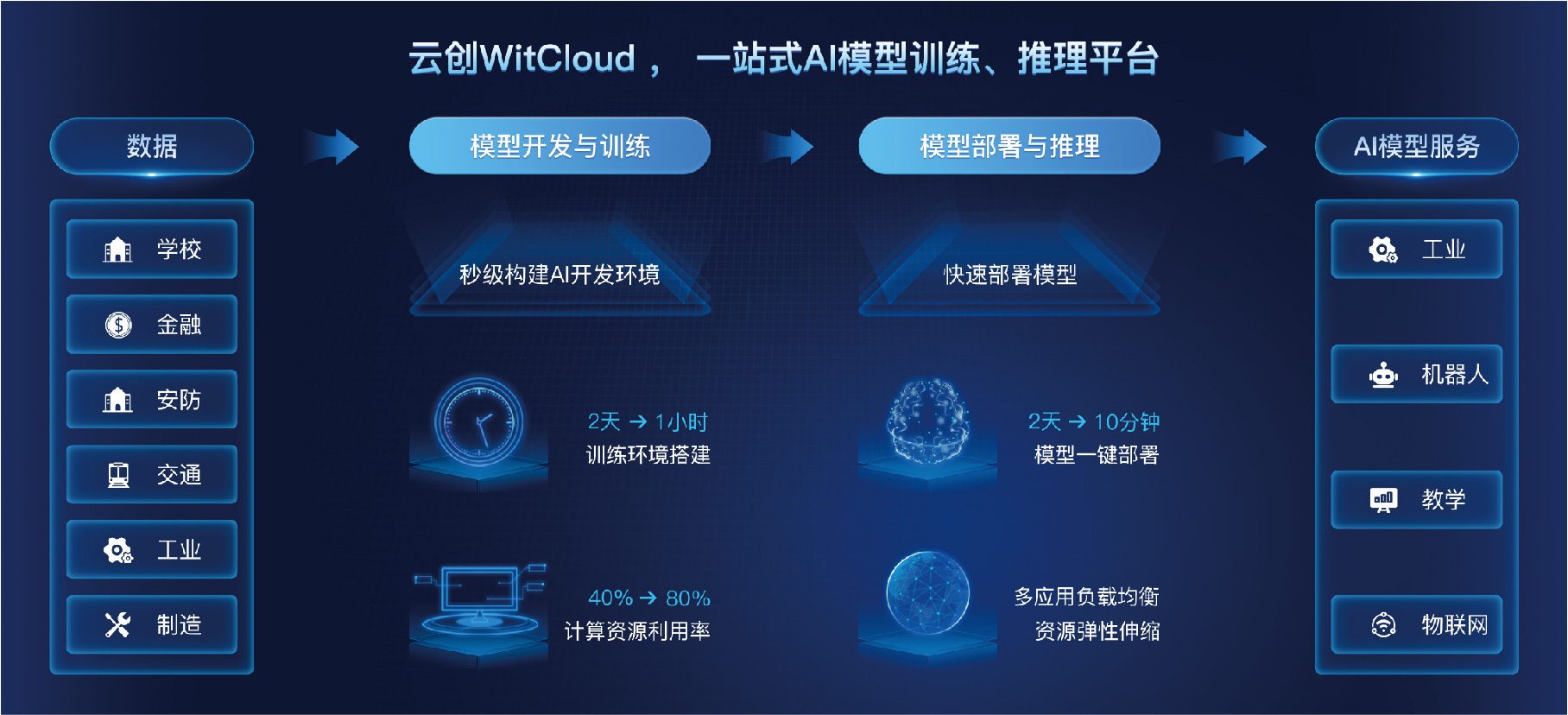 新一代DeepRack深度學習一體機是高校、科研機構、企業進行深度學習研究的人工智能開發資源管理平臺。經過全面升級的DeepRack深度學習一體機在完全覆蓋原有產品功能的同時,采用WitCloud作為其統一資源調度管理軟件,具備強大的GPU計算資源虛擬化部署、可視化管理、集中化調度能力,提供軟硬件一體的人工智能訓練和推理服務,實現細粒度的權限管理、安全高效的數據管理、全面細致的監控管理、算法訓練和模型推理的一站式管理,降低開發人員在深度學習領域的研究門檻。