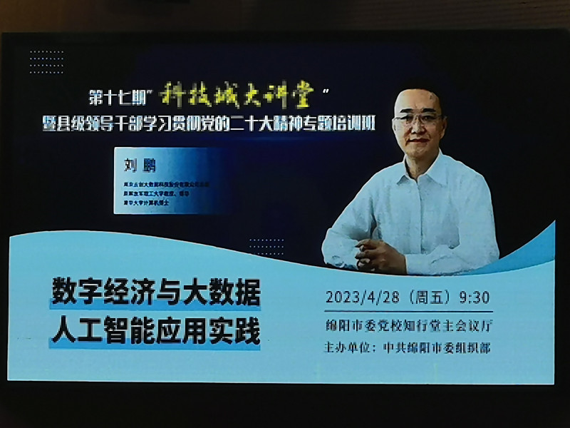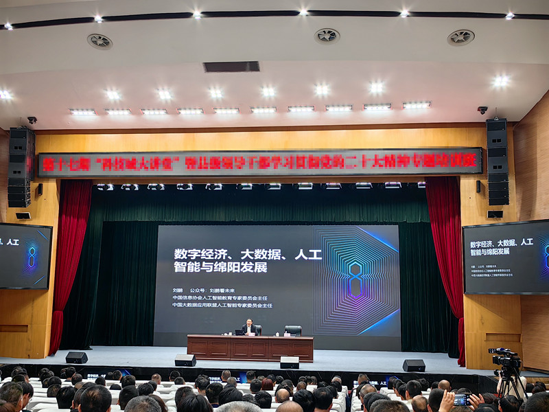 4月28日上午,綿陽市委組織部舉辦第十七期“科技城大講堂”暨縣級領導干部學習貫徹黨的二十大精神專題培訓班。劉鵬教授受邀在培訓主會場——綿陽市委黨校作主題報告,主、分會場共計4000余人聽取了報告。
