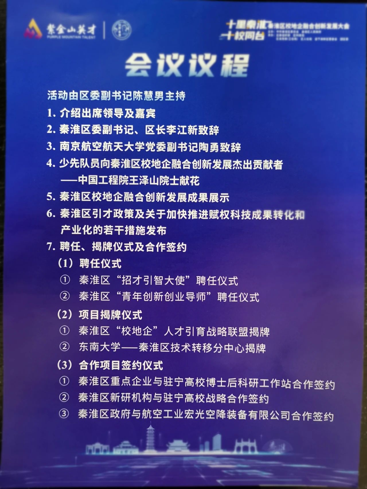 此外,秦淮區(qū)“校地企”人才引育戰(zhàn)略聯(lián)盟正式成立,東南大學(xué)—秦淮區(qū)技術(shù)轉(zhuǎn)移分中心落地揭牌。會(huì)上還進(jìn)行了秦淮區(qū)新研機(jī)構(gòu)與駐寧高校戰(zhàn)略合作簽約、秦淮區(qū)政府與航空工業(yè)宏光空降裝備有限公司共建簽約。