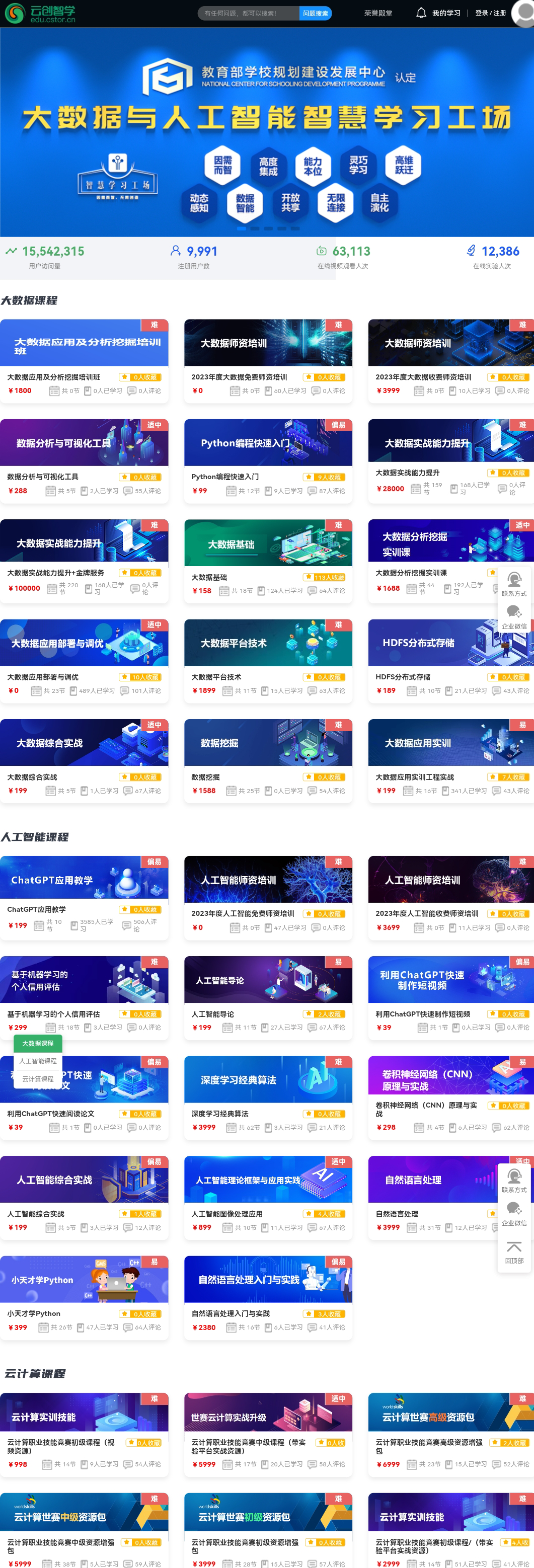 在實驗室建設(shè)規(guī)劃之外,高校人工智能專業(yè)師生也可在云創(chuàng)智學(xué)平臺(edu.cstor.cn)上進行線上學(xué)習(xí)。云創(chuàng)智學(xué)為學(xué)員提供集數(shù)據(jù)資源、強大算力和實驗指導(dǎo)為一體的大數(shù)據(jù)、人工智能在線學(xué)習(xí)平臺,并將數(shù)百個工程項目經(jīng)驗?zāi)毘山虒W(xué)內(nèi)容,使學(xué)員基于知識圖譜學(xué)習(xí),獲得專業(yè)的技術(shù)知識與實踐技能,擁有更多職業(yè)優(yōu)勢。