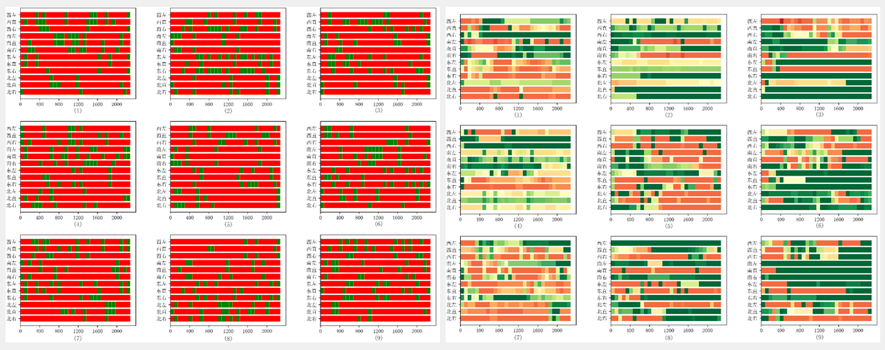 300回合區(qū)域交通信號相位選擇及交通狀態(tài)變化