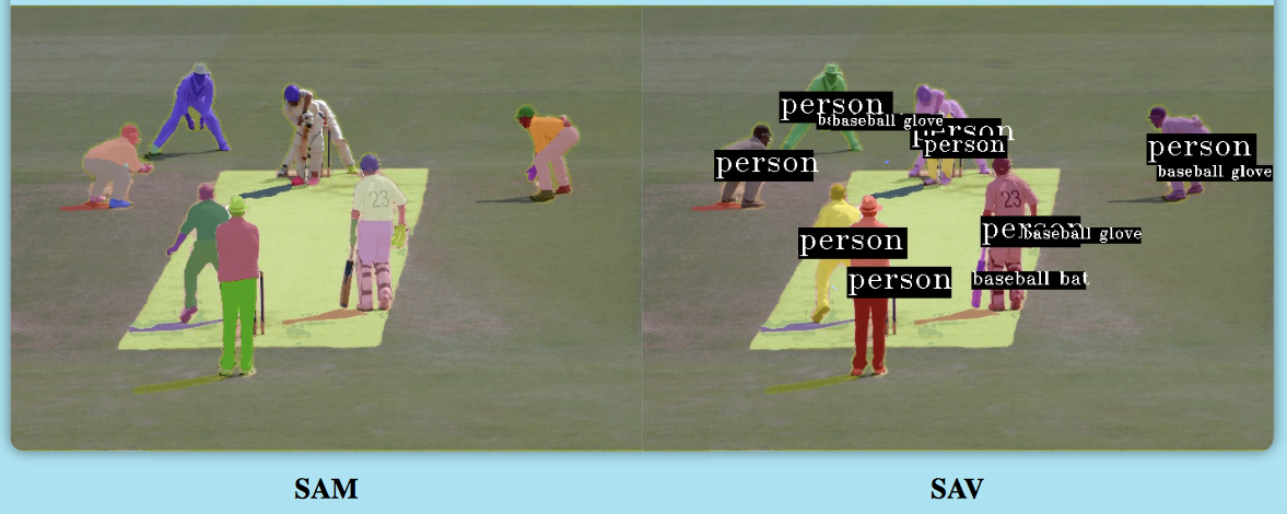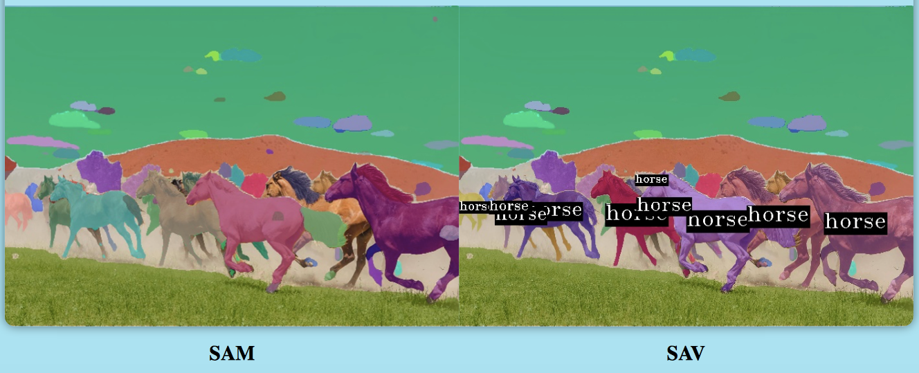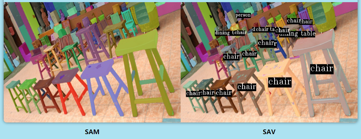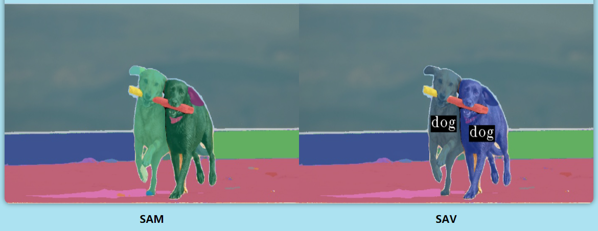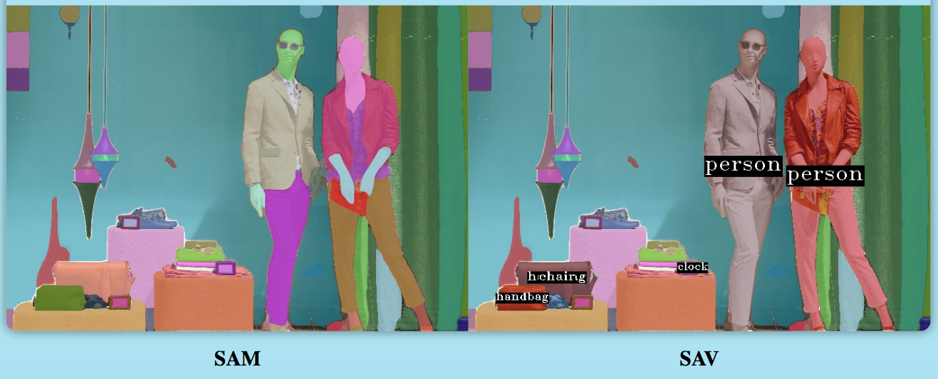 圖片分割結果:左側為SAM,右側為SAV(圖片來源:SAV)