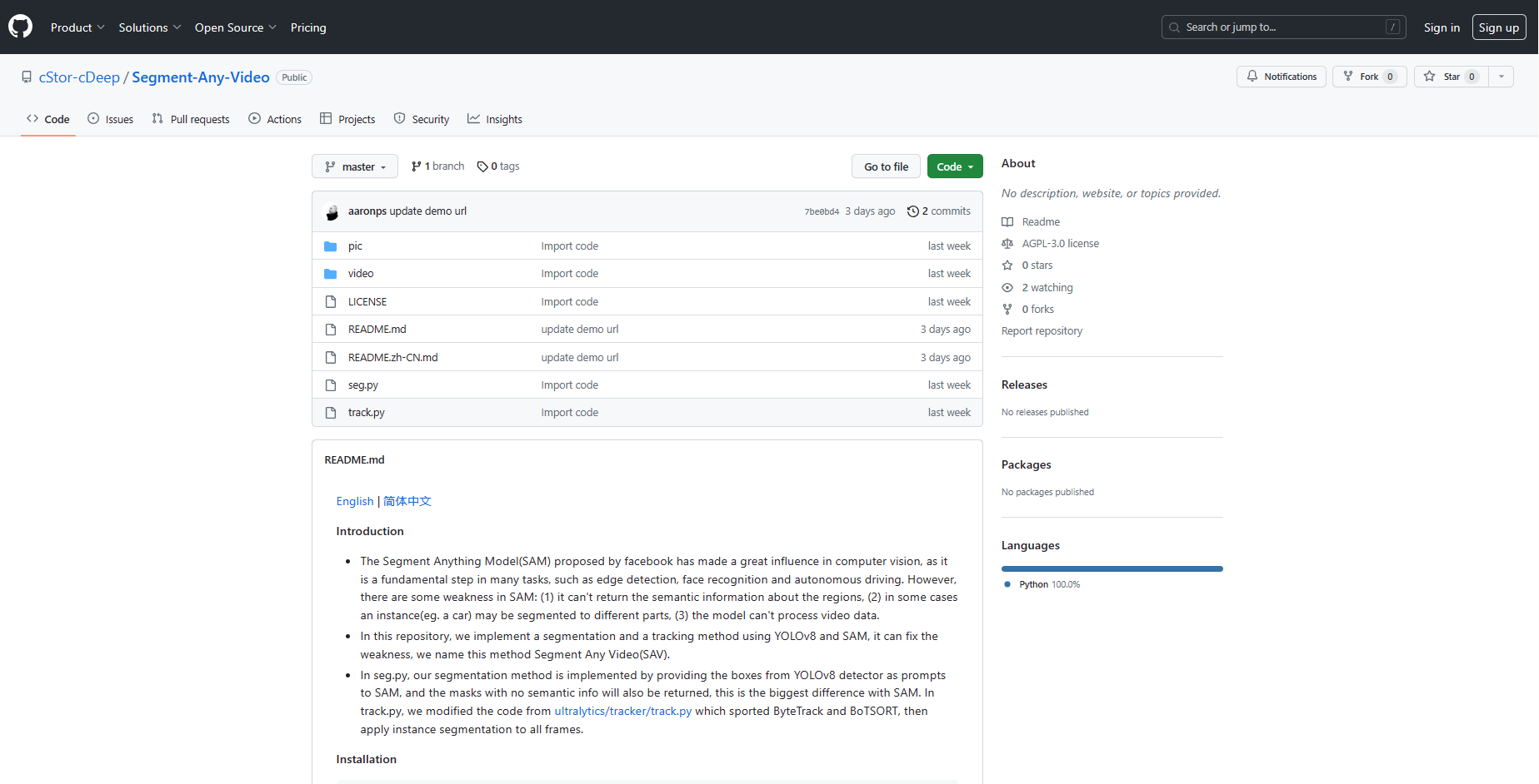 需要說明的是,本項目只關注算法自動分割的應用場景,所以SAV無需人工輸入點、曲線、矩形框等提示信息。