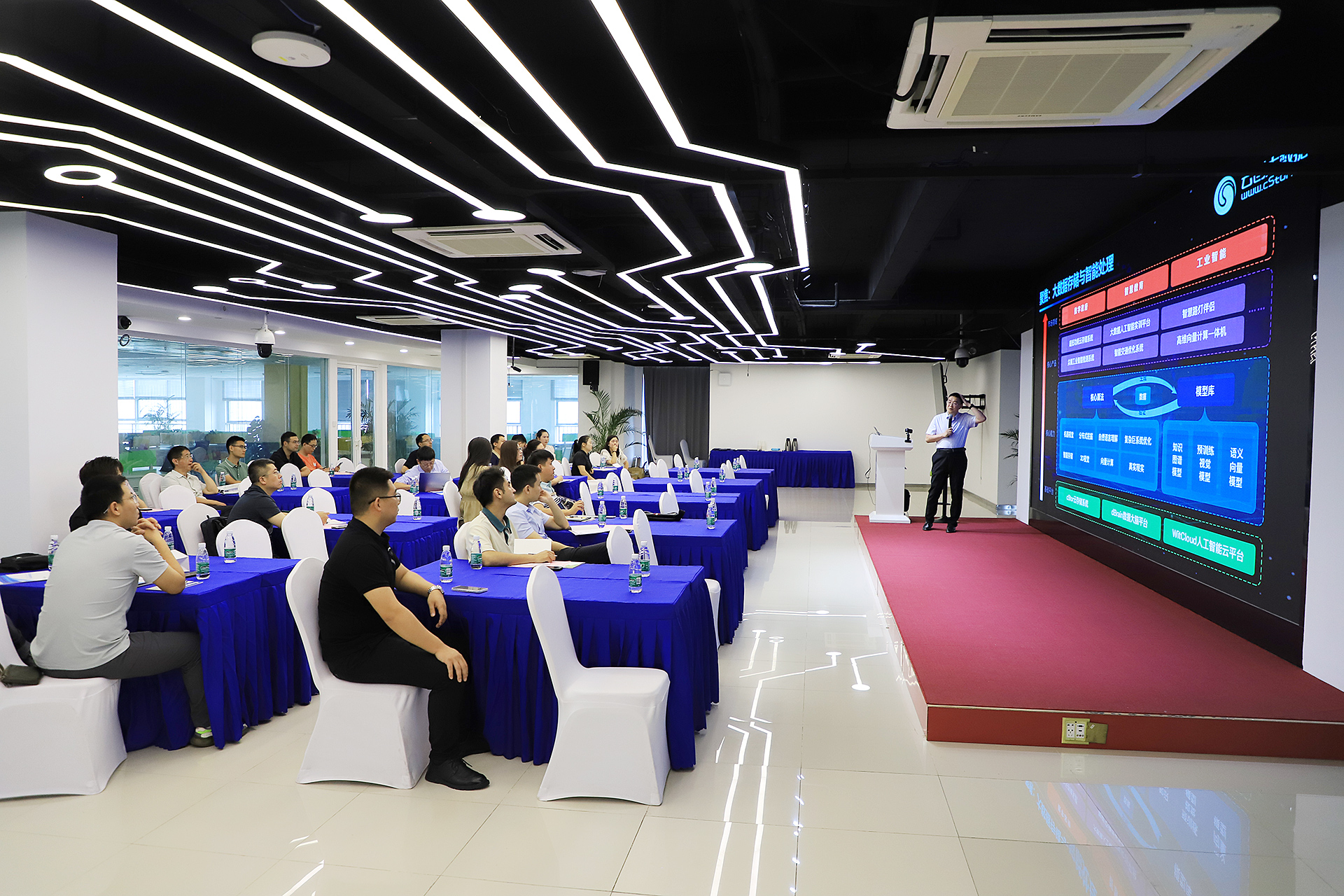 在下午的日程中,云創大數據多位工程師向大家介紹并演示了新版大數據實驗平臺、云計算實訓平臺、cStor超融合云存儲系統、人工智能云平臺、工業智能實訓平臺、cGPT智能知識庫、cGPT大模型訓練推理平臺等。工程師們就這些產品的特性、功能、優勢、操作、服務等,向大家進行了詳細分享。