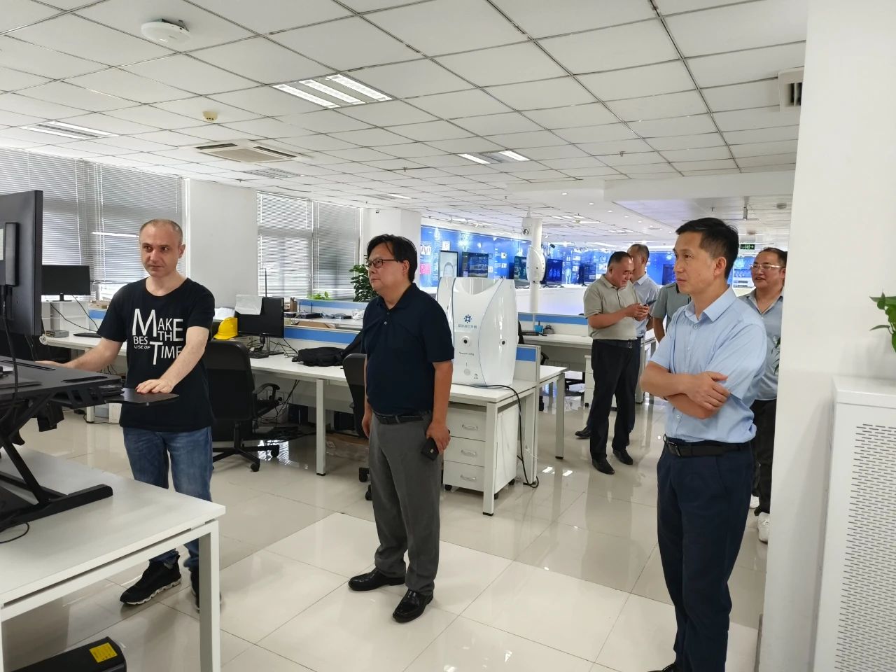 在參觀環節,來賓對云創大數據榮譽資質和技術專利展區、大數據運營中心、人工智能研究院、尖端工業智能展區等多處進行參觀。通過參觀,云創在生成式AI領域持續發力,在大模型技術應用領域取得的技術成果給來賓留下了深刻印象。云創的企業愿景和企業文化也深深打動了來賓。