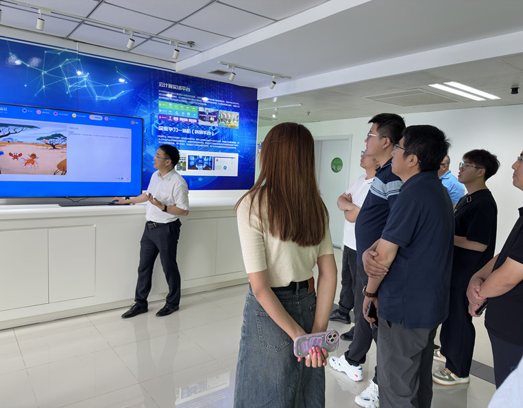 接著,大家對云創(chuàng)大數(shù)據(jù)進(jìn)行了實(shí)地參觀。在中國云計(jì)算創(chuàng)新基地A棟10層、9層、8層,劉鵬教授與云創(chuàng)大數(shù)據(jù)外聯(lián)負(fù)責(zé)人沈大為先生帶大家逐一進(jìn)行參觀。云創(chuàng)大數(shù)據(jù)技術(shù)優(yōu)勢明顯,成功案例眾多。當(dāng)工程師對云創(chuàng)代表產(chǎn)品進(jìn)行演示時(shí),大家全神貫注,表現(xiàn)出濃厚的興趣。