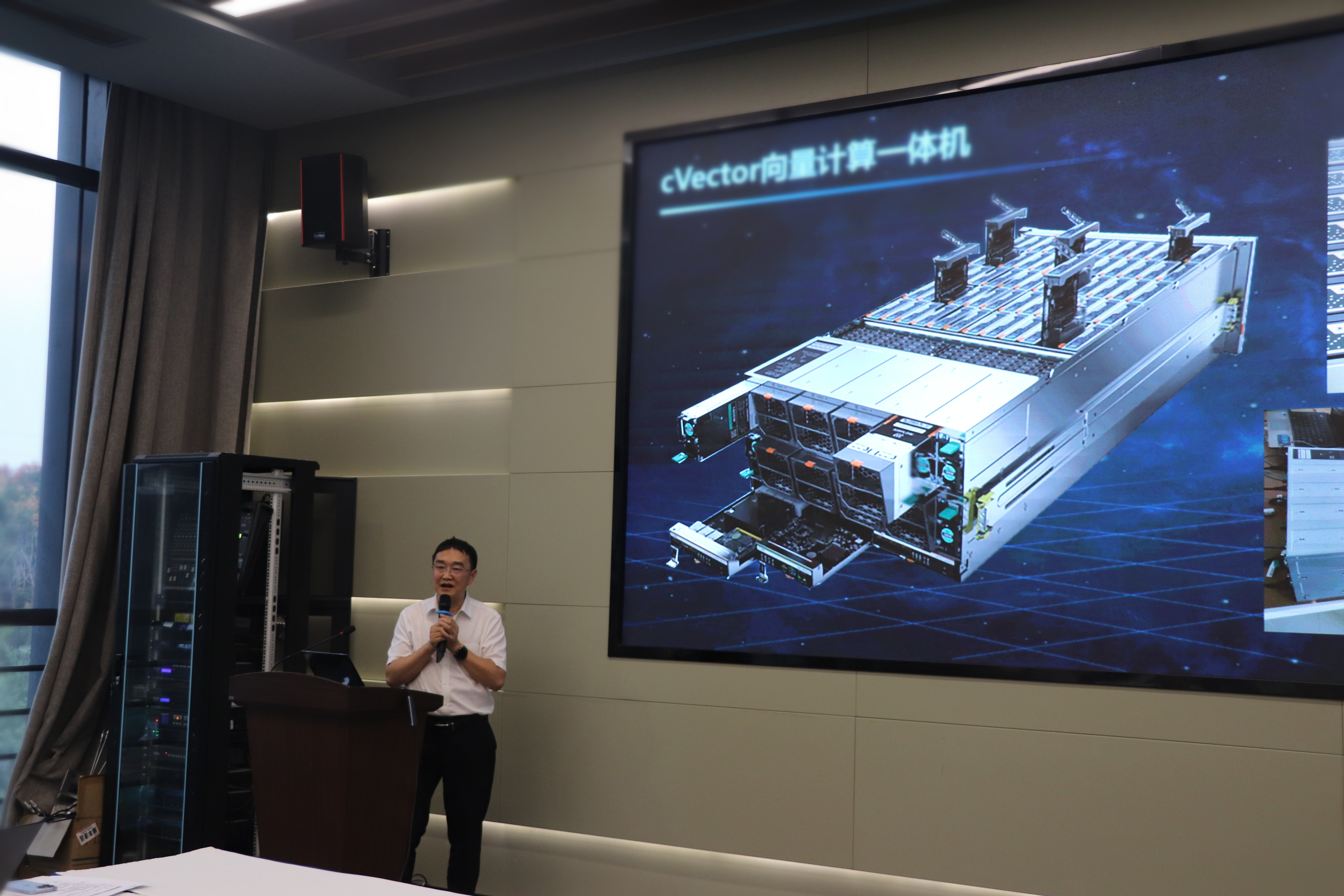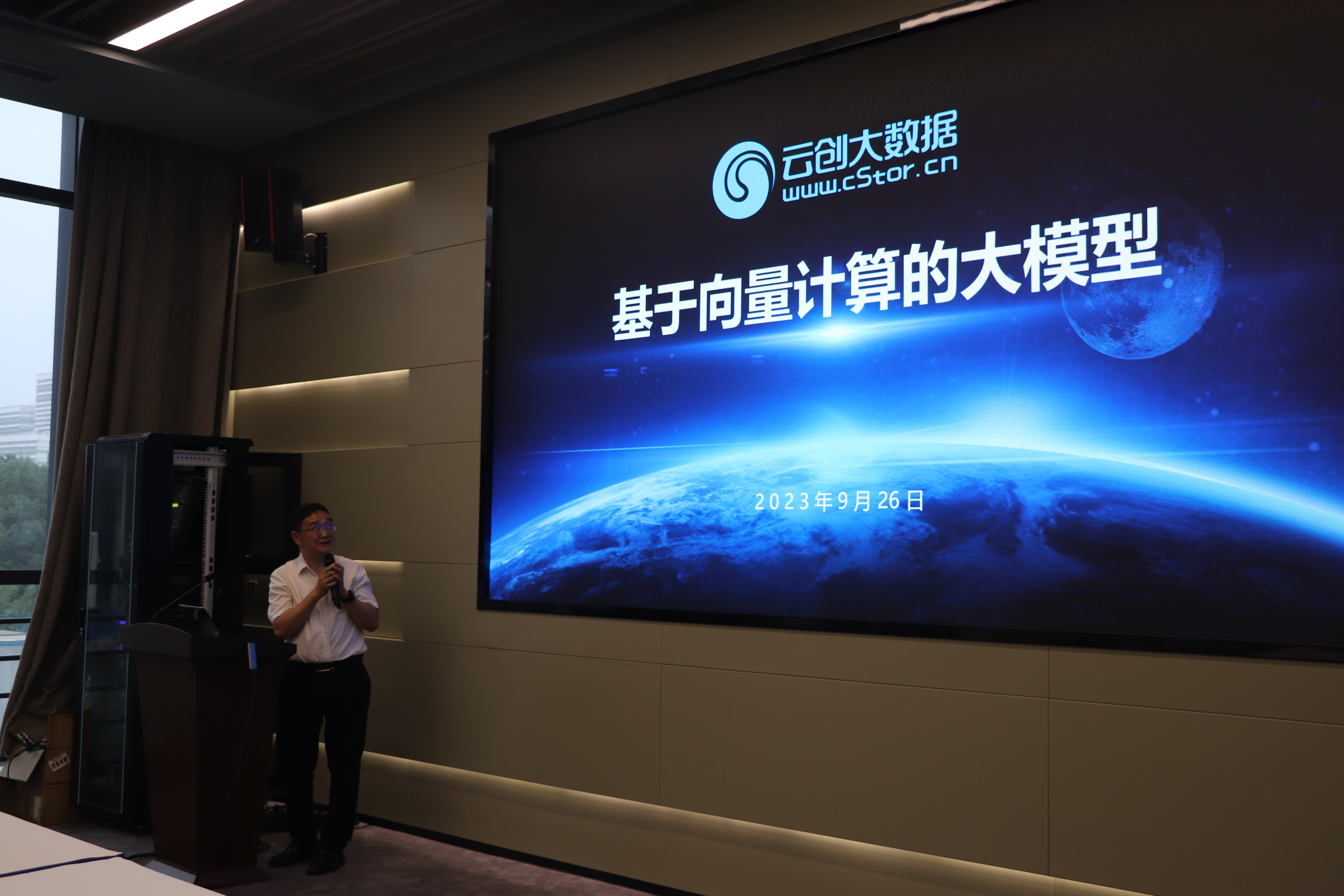 會議的上半場,由各企業代表發表大模型主題演講。云創大數據總裁劉鵬教授作為技術專家,作“基于向量計算的大模型”主題報告,并重點介紹了云創大數據開發的cGPT大模型訓練推理一體機、cGPT S1000自然語言搜索一體機、cVector向量計算一體機、cGPT M1000敏感信息過濾一體機等產品,云創工程師則就產品進行了演示。