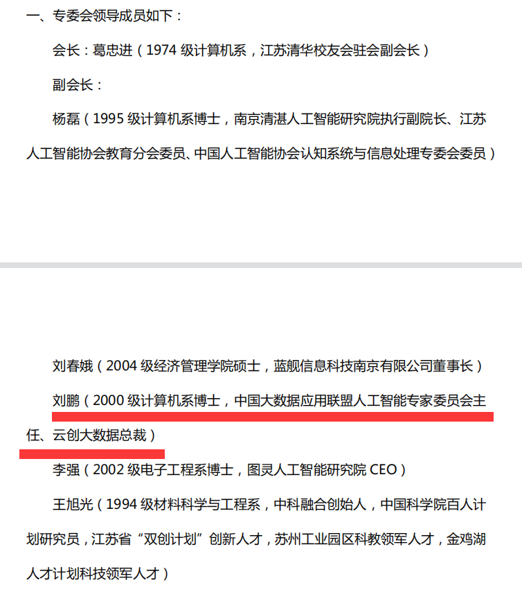近日,經江蘇清華校友會理事會審議批準,江蘇清華校友會人工智能專委會正式成立,劉鵬教授擔任副會長。