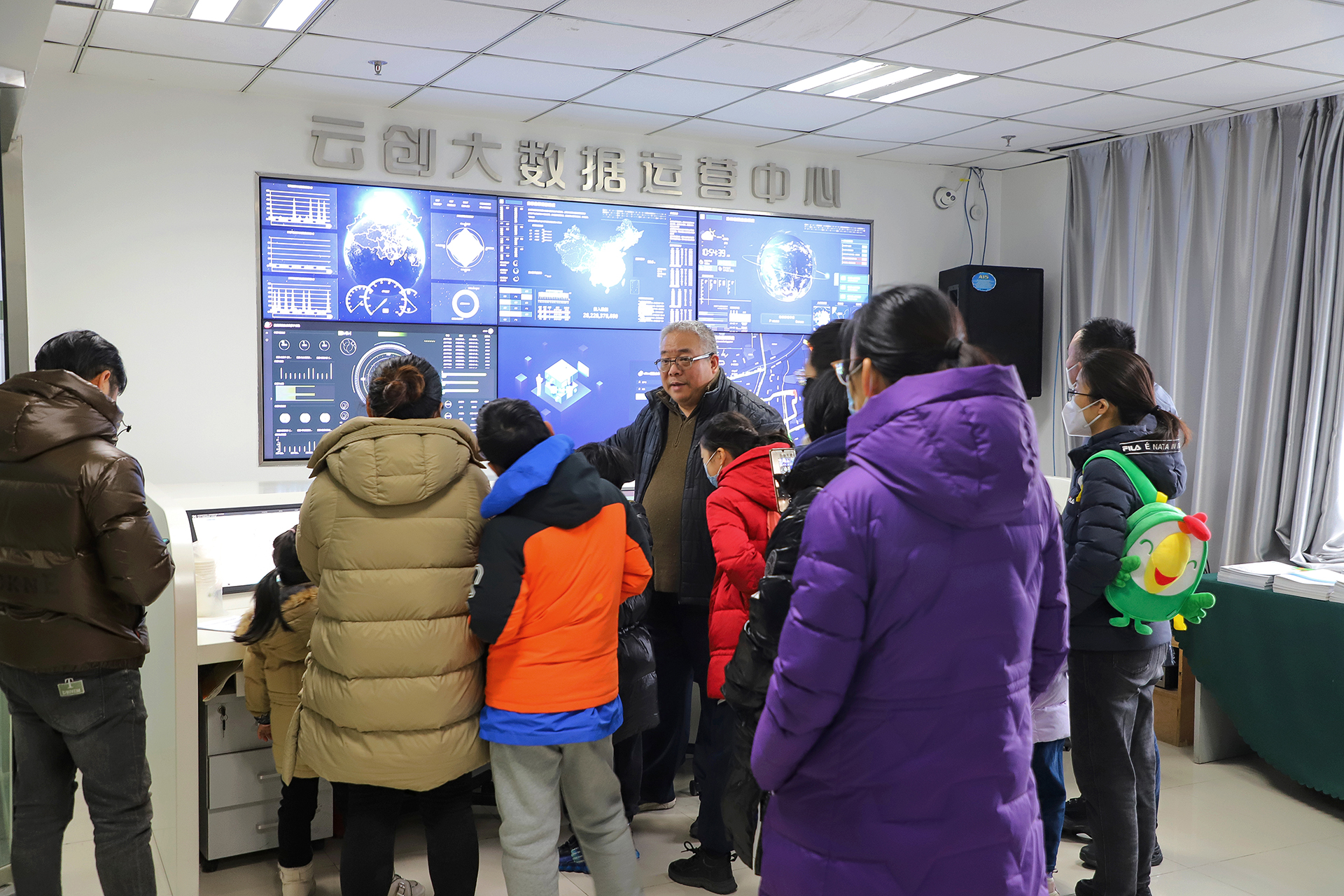 家長和孩子們到達后,云創大數據外聯負責人沈大為先生首先向大家介紹云創大數據的企業概況,并帶大家進行實地參觀。八樓的重點實驗室技術服務中心,九樓的大數據運營中心、榮譽資質和技術專利展區,十樓的人工智能研究院等多處均讓小朋友們感到興奮不已。