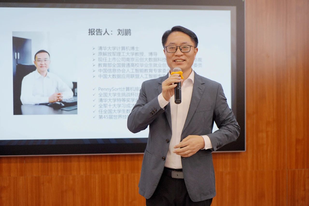 劉鵬教授所作報告題目為《人工智能引領(lǐng)未來》。其深度剖析了人工智能近十年來的三次大飛躍,包括機器視覺、AlphaGo和ChatGPT的技術(shù)本質(zhì)。劉鵬教授還介紹了其在上述三個領(lǐng)域所做的工作,重點介紹了通過向量計算來增強大模型的技術(shù),并展望了人工智能對各行各業(yè)的影響。