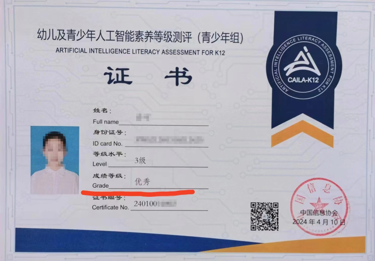 今年2月至3月份,云創大數據推出“圖形化編程思維拓展課”,500多位小學員報名參加。課程結束后,18位小學員參加了中國信息協會組織的幼兒及青少年人工智能素養等級測評(青少年組),且全部考試合格,獲得證書。