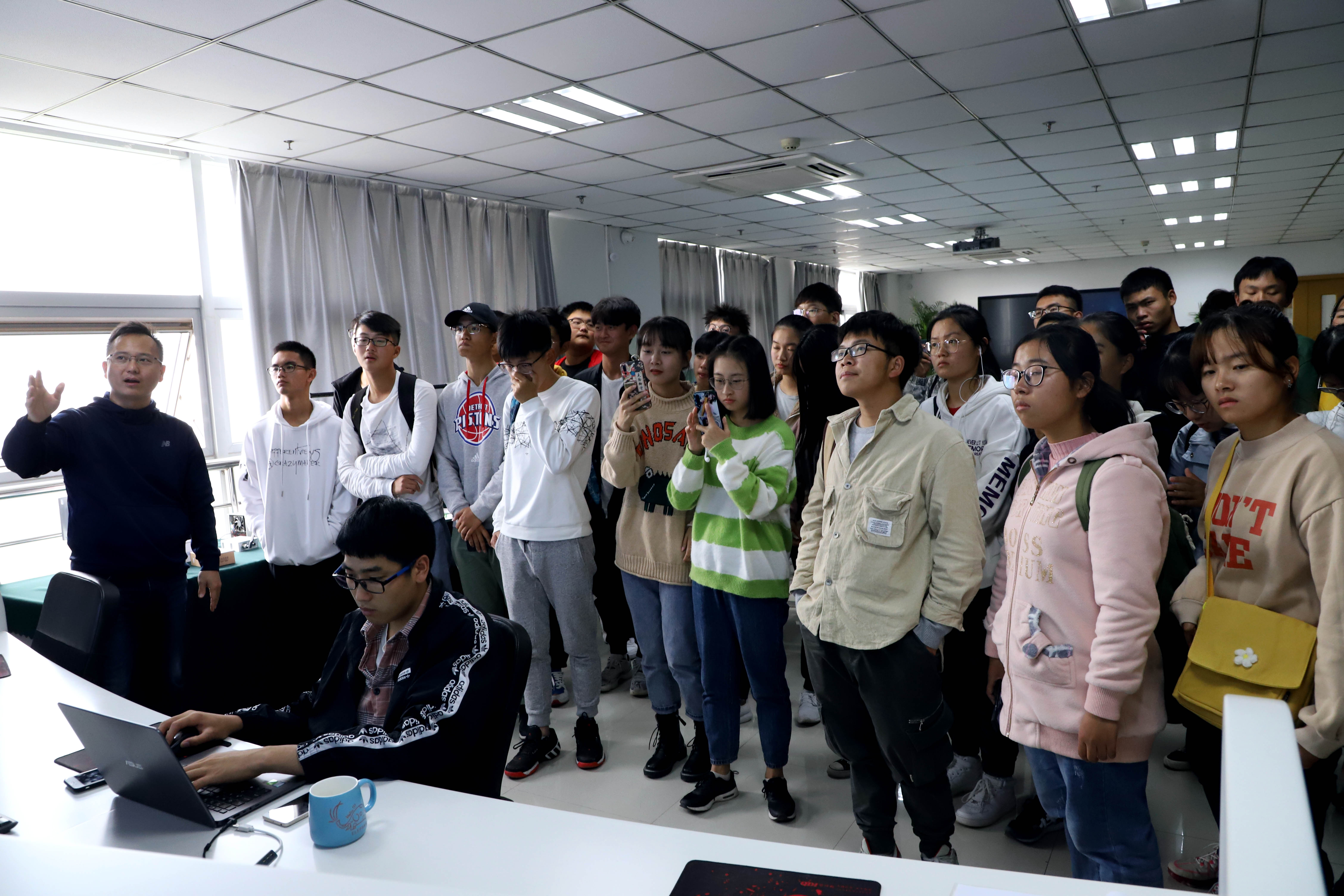 同學們到達后,首先在云創大數據培訓基地聽取了沈大為的主題報告。從云創企業文化、核心技術、典型產品以及成功案例等,沈大為一一向同學們進行了介紹。期間,沈大為還為同學們分享了物聯網、云計算、大數據和人工智能的發展現狀、發展趨勢、彼此聯系,及其在各行各業的具體應用等,給同學們帶來了一場精彩的科技盛宴。在聽取報告過程中,同學們全神貫注,對沈大為講解的內容表現出濃厚的興趣。