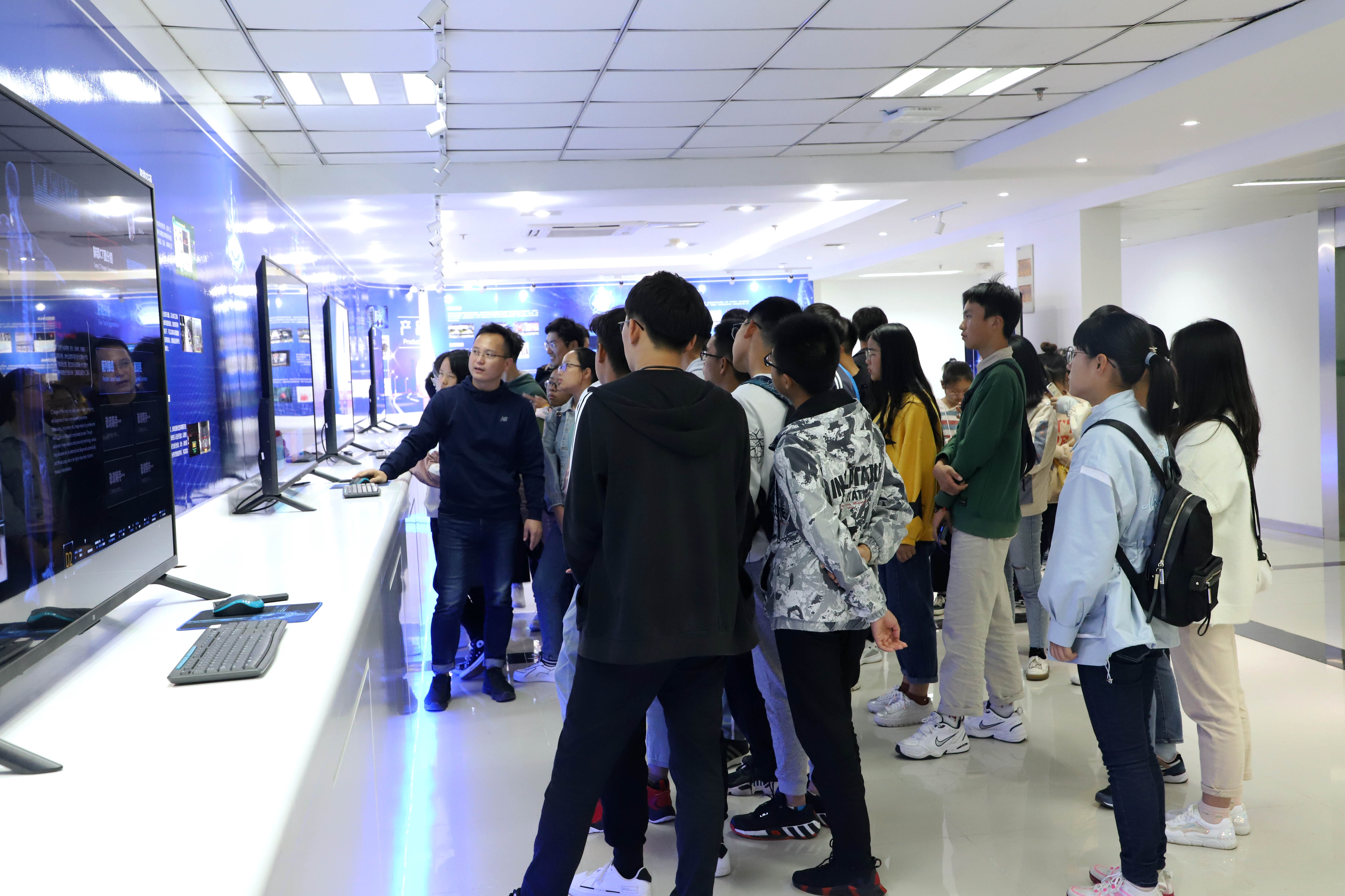 此外,同學們還對云創大數據進行了實地參觀。前臺大廳展示的榮譽資質和技術專利、劉鵬教授主編的相關圖書,以及云創以大數據存儲與智能處理為核心,在公共安全、智慧環保、地震預警、智能教育等領域開發的相關產品應用均給同學們留下了深刻印象。值得一提的是,云創發揮自身優勢,為教育賦能領域開發的大數據實驗平臺、人工智能實驗平臺、云計算實訓平臺以及編寫的高校大數據人工智能系列教材均收獲同學們頻頻點贊。