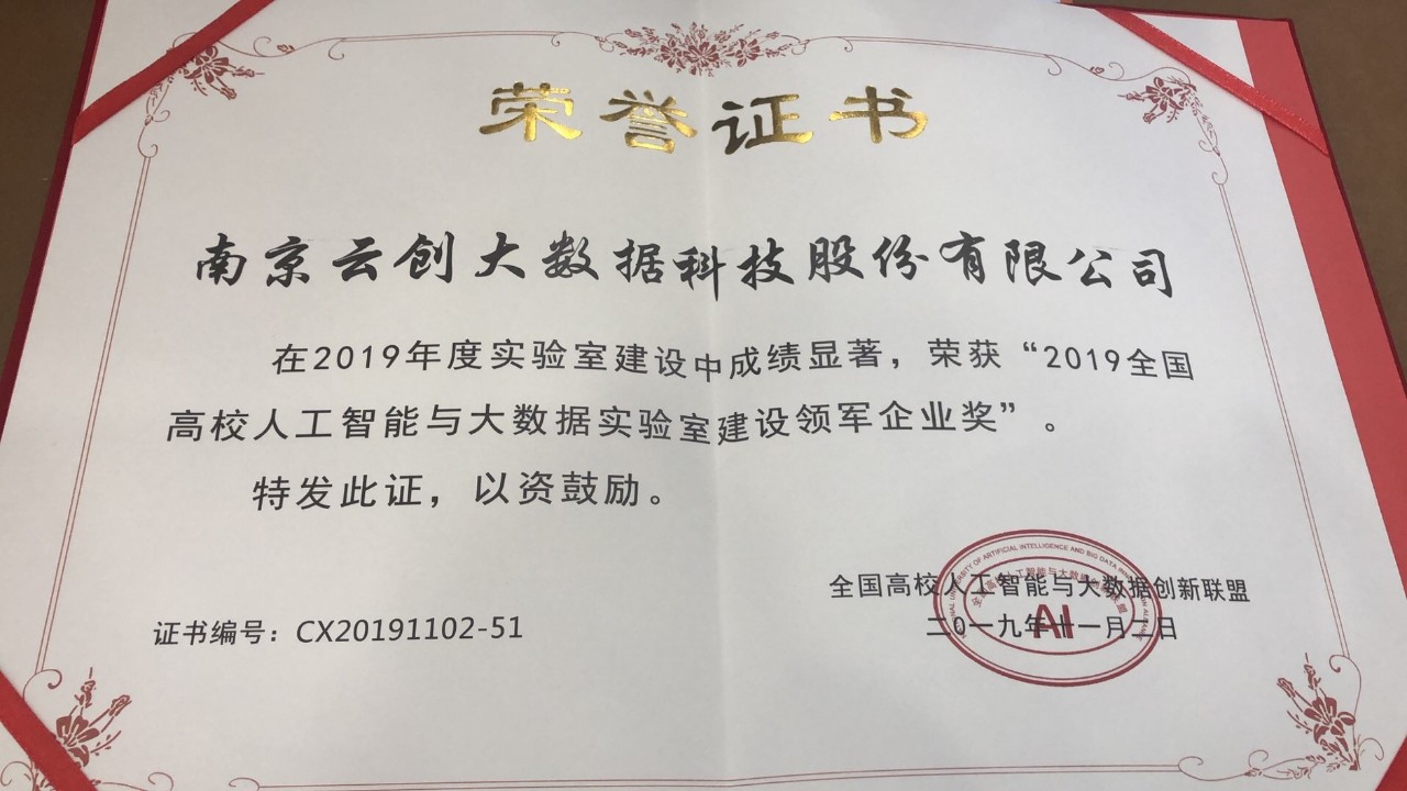 11月2日,由全國高校人工智能與大數據創(chuàng)新聯盟主辦、機械工業(yè)出版社承辦、中關村人工智能創(chuàng)新創(chuàng)業(yè)基地協辦的“2019第二屆全國高校人工智能大數據教育教學創(chuàng)新論壇暨教材出版研討會”在北京紫玉飯店舉辦。云創(chuàng)大數據憑借在人工智能與大數據實驗室建設方面的既有經驗和成功案例,斬獲“2019全國高校人工智能與大數據實驗室建設領軍企業(yè)獎”,駱夢陽經理作為云創(chuàng)代表領取了榮譽證書。