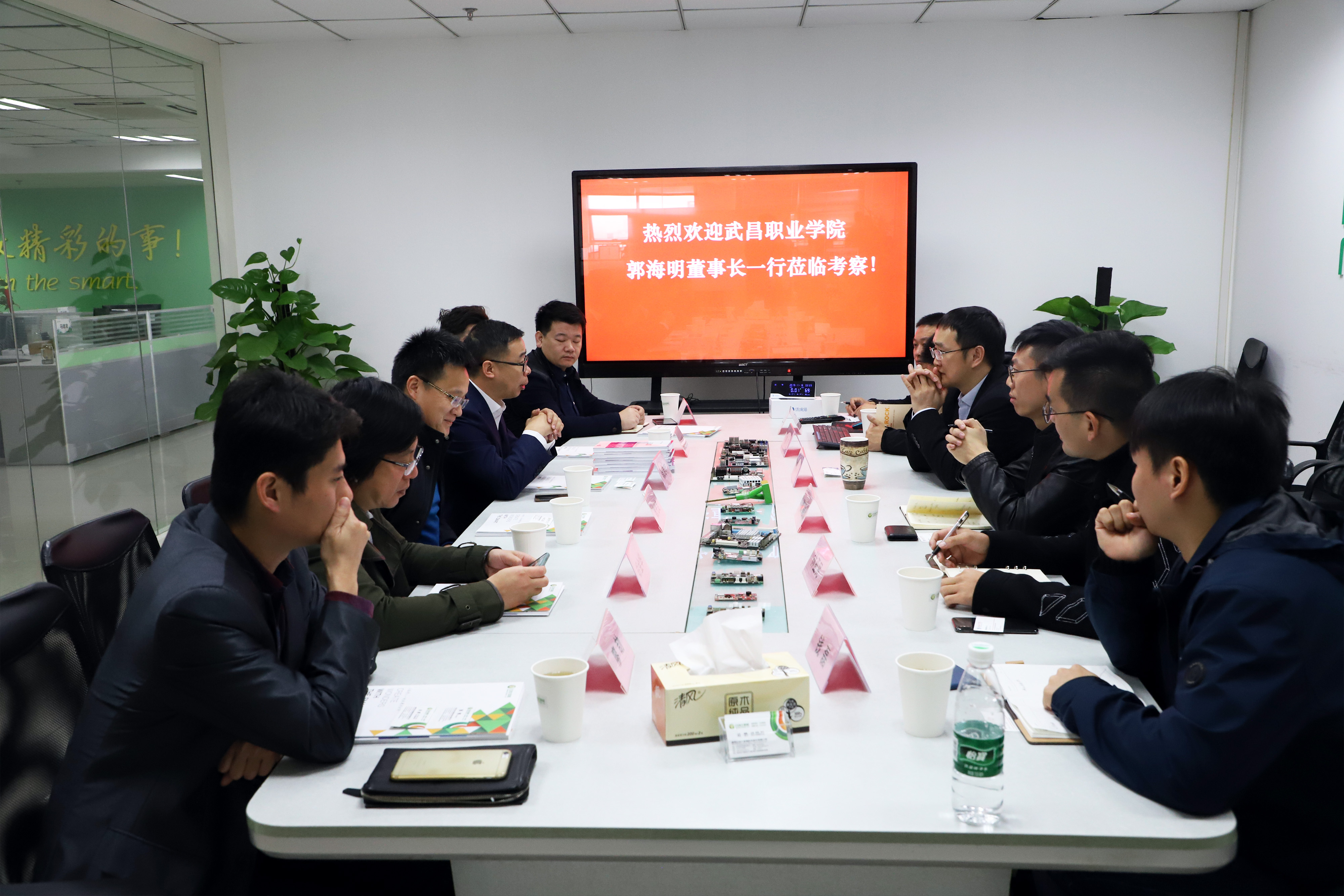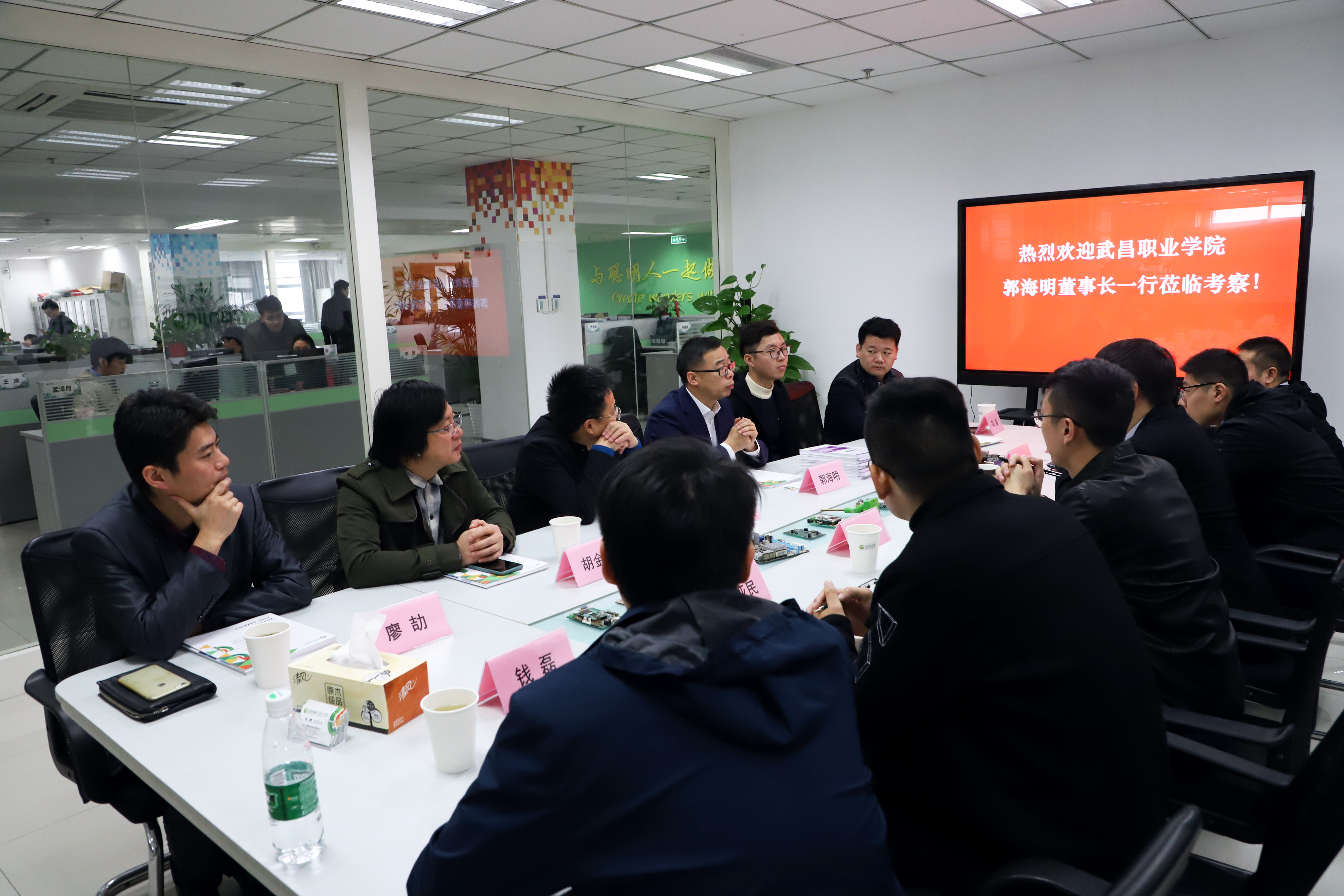 11月18日,武昌職業學院董事長郭海明、武昌職業學院電子信息工程學院副院長馬濤、武昌職業學院世界技能大賽辦公室主任彭傳波與武漢明德云智教育科技有限公司總裁魏先定、副總裁胡金華以及辦公室主任廖劼一行蒞臨云創,云創大數據總經理劉鵬教授、外聯負責人沈大為與張偉總監共同接待了來賓。