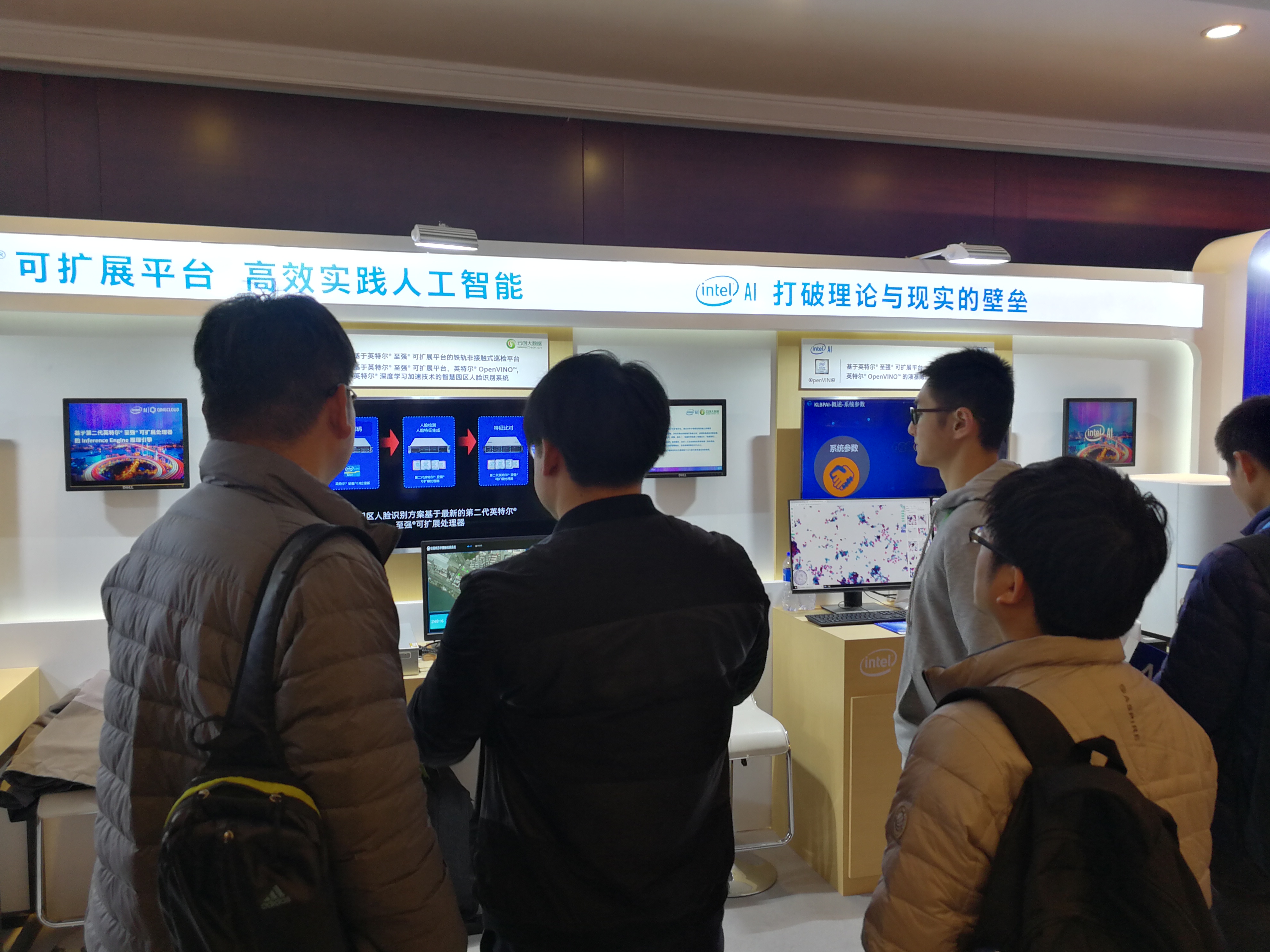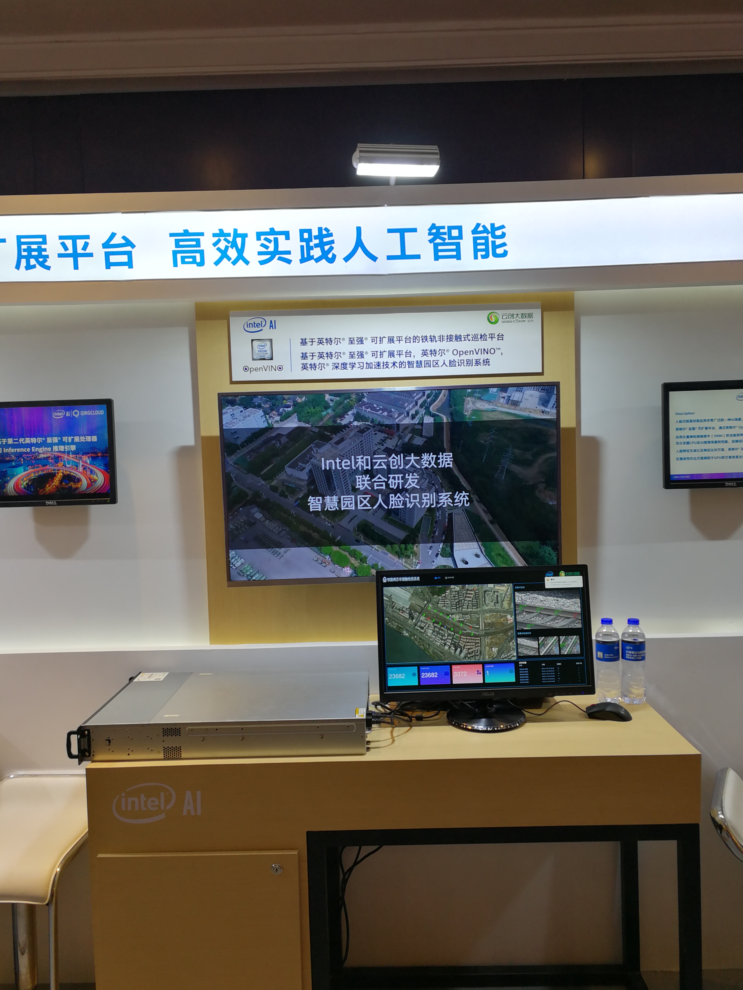 大會上,云創大數據攜智慧園區人臉識別系統與鐵軌非接觸式巡檢系統兩款人工智能產品應用盛裝亮相,吸引了不少訪客的駐足了解。技術人員為訪客進行詳細演示,并針對產品特性、技術優勢,以及主要功能等與訪客進行交流。