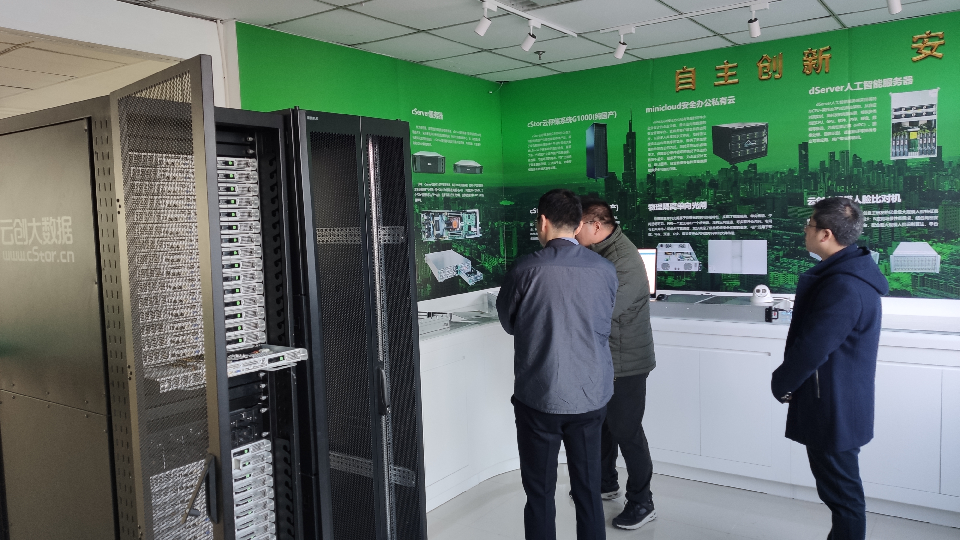 此外,來賓還對云創(chuàng)進(jìn)行了實(shí)地參觀考察。云創(chuàng)斬獲的榮譽(yù)資質(zhì)和技術(shù)專利,劉鵬教授相關(guān)科研成果,以及九樓大數(shù)據(jù)運(yùn)營中心、二樓智能硬件研發(fā)中心、十樓人工智能研究院展示的云創(chuàng)以大數(shù)據(jù)存儲與智能處理為核心,在智慧環(huán)保、平安城市、地震預(yù)警以及智能教育等多領(lǐng)域的產(chǎn)品應(yīng)用吸引了來賓的駐足了解。到訪臨近尾聲之際,來賓直言此行收獲頗豐,并對云創(chuàng)技術(shù)實(shí)力和劉鵬教授個(gè)人給予了高度贊賞。