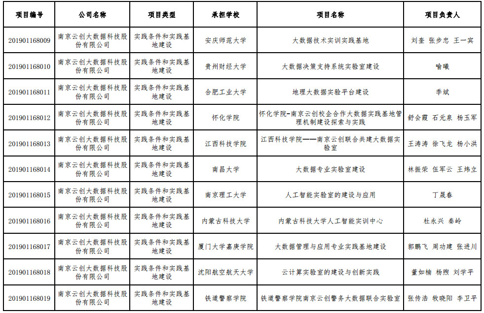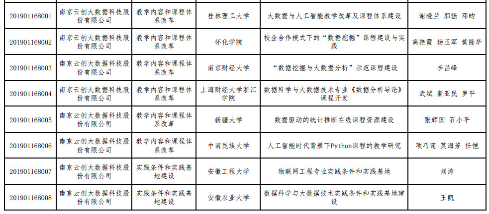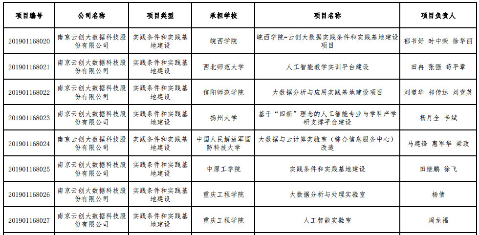 云創大數據2019年第一批教育部產學合作協同育人項目立項名單(點擊看大圖)