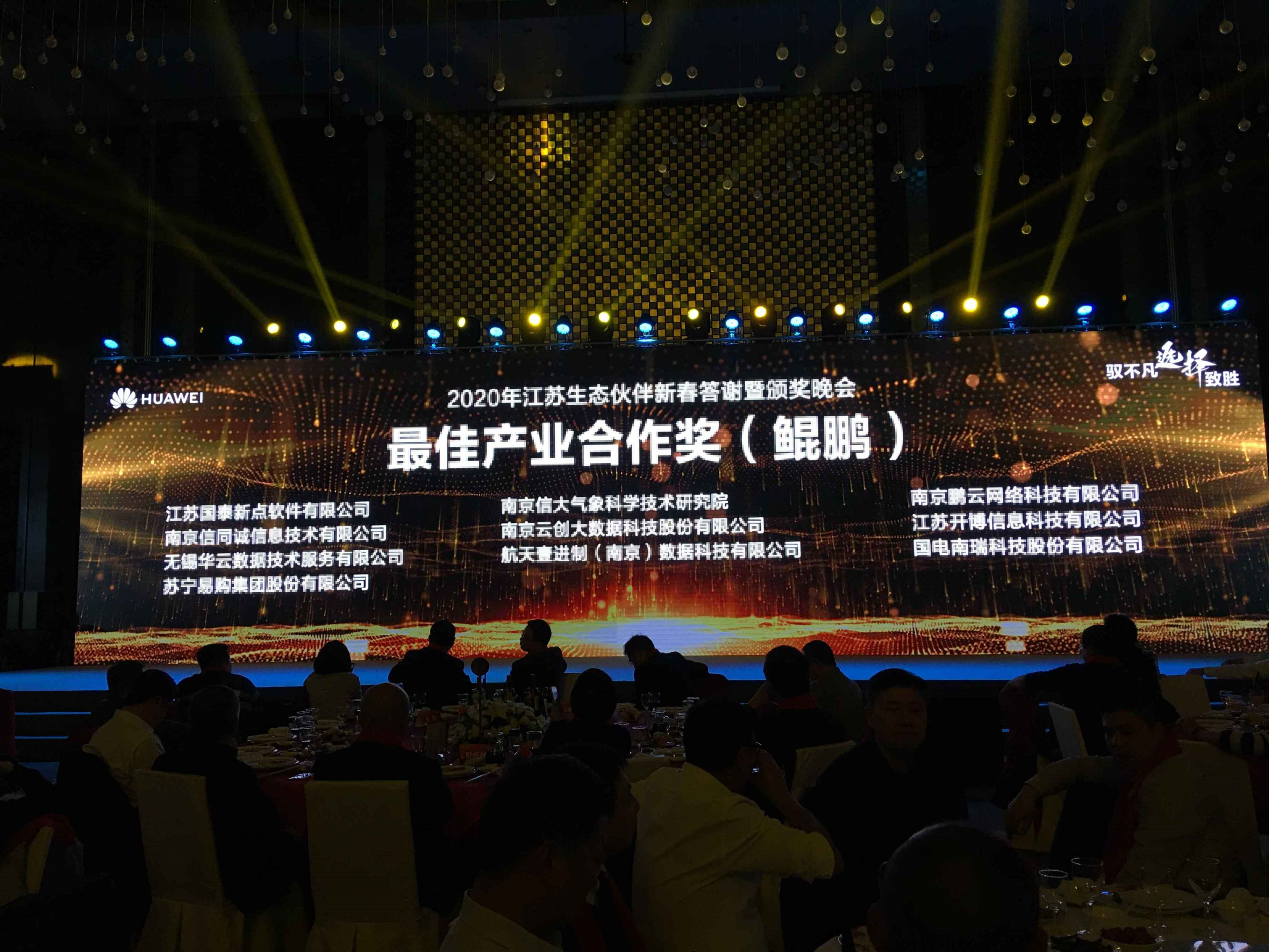 1月6日下午,華為江蘇在南京金陵飯店舉辦了“2020年江蘇生態伙伴新春答謝暨頒獎晚會”,華為江蘇的合作伙伴借此晚會歡聚一堂。云創大數據外聯負責人沈大為、市場部經理袁高峰代表云創出席了本次活動。