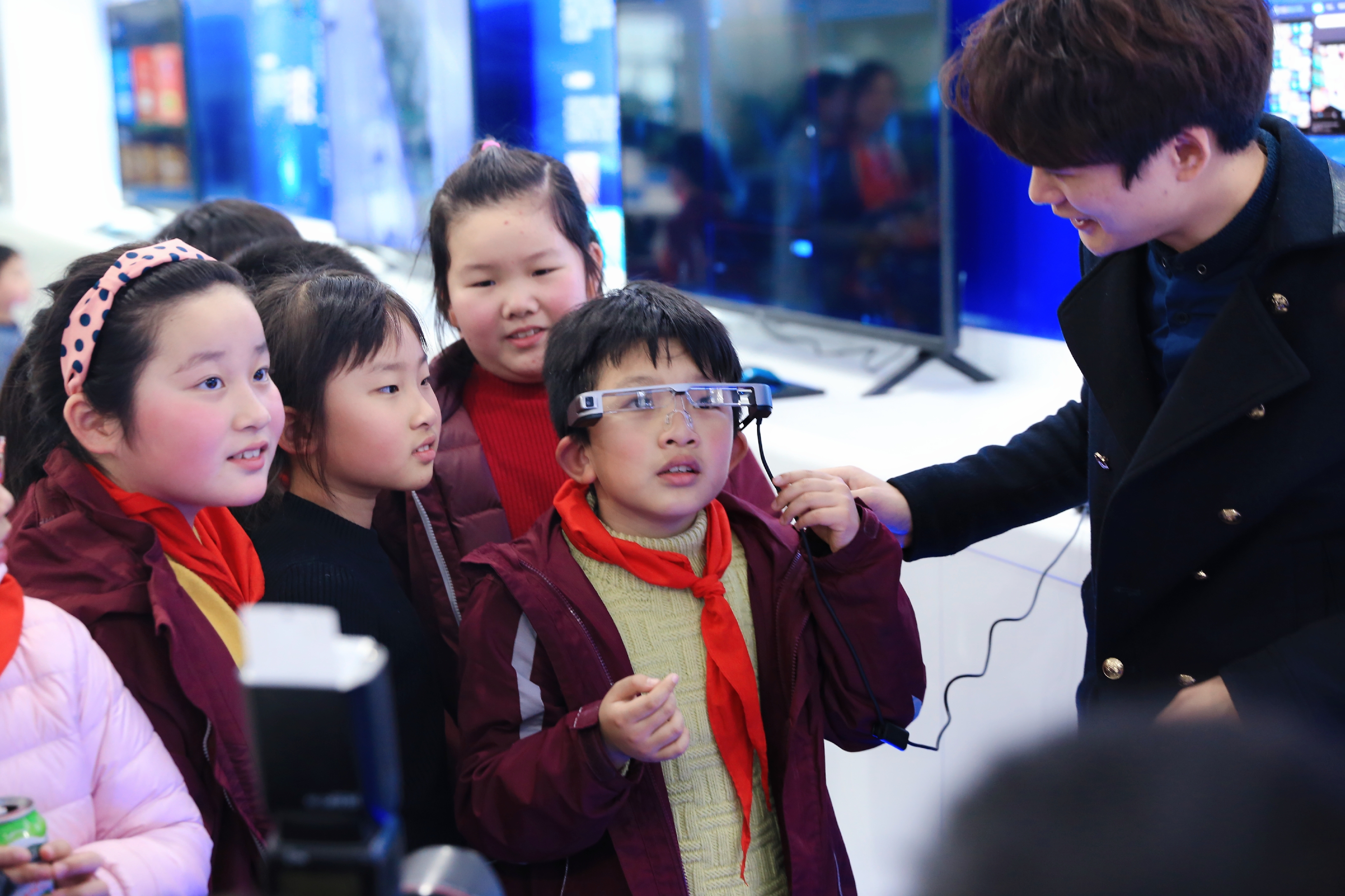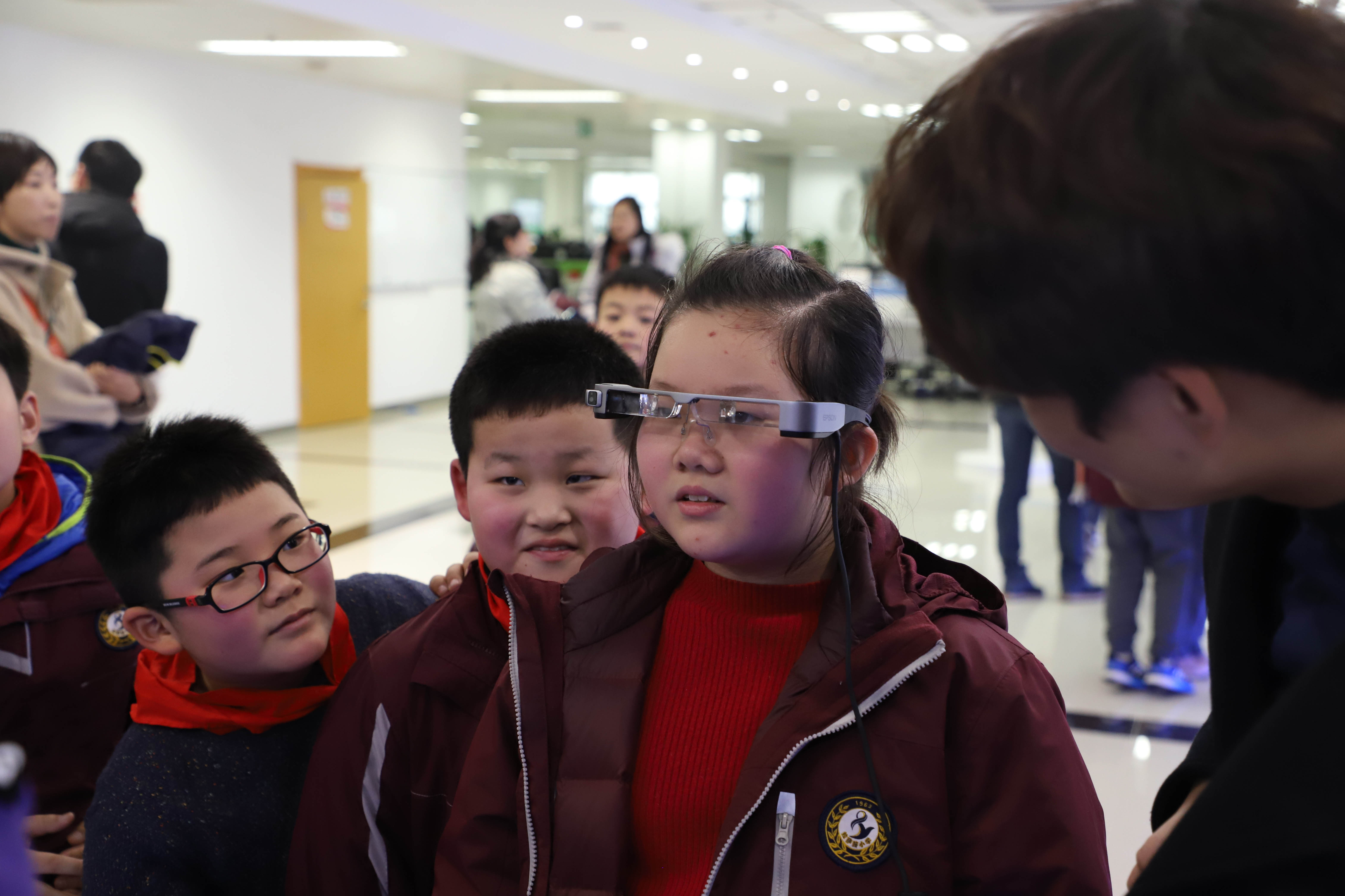 家長和孩子們到達云創后,湯鵬首先帶大家進行了實地參觀。九樓的云創大數據運營中心、榮譽資質和技術專利展區、劉鵬教授主編圖書展區,十樓的人工智能研究院等給大家留下了深刻印象。其中,孩子們對應用于安防、防恐、維穩等工作中的智能眼鏡人臉識別系統,可以實現地震預警發布的地震智慧屏等表現出濃厚的興趣,對人工智能教育機器人——RoboMaster S1 機甲大師同樣愛不釋手。