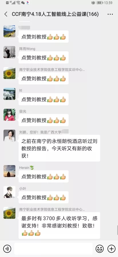 4月18日上午,CCF(中國計算機學會)南寧會員活動中心舉辦了線上直播公益課,劉鵬教授受邀作主題報告。3700多位南寧會員以及對大數(shù)據(jù)、人工智能技術感興趣的社會人士、在校大學生、青少年等觀看了本次直播。
