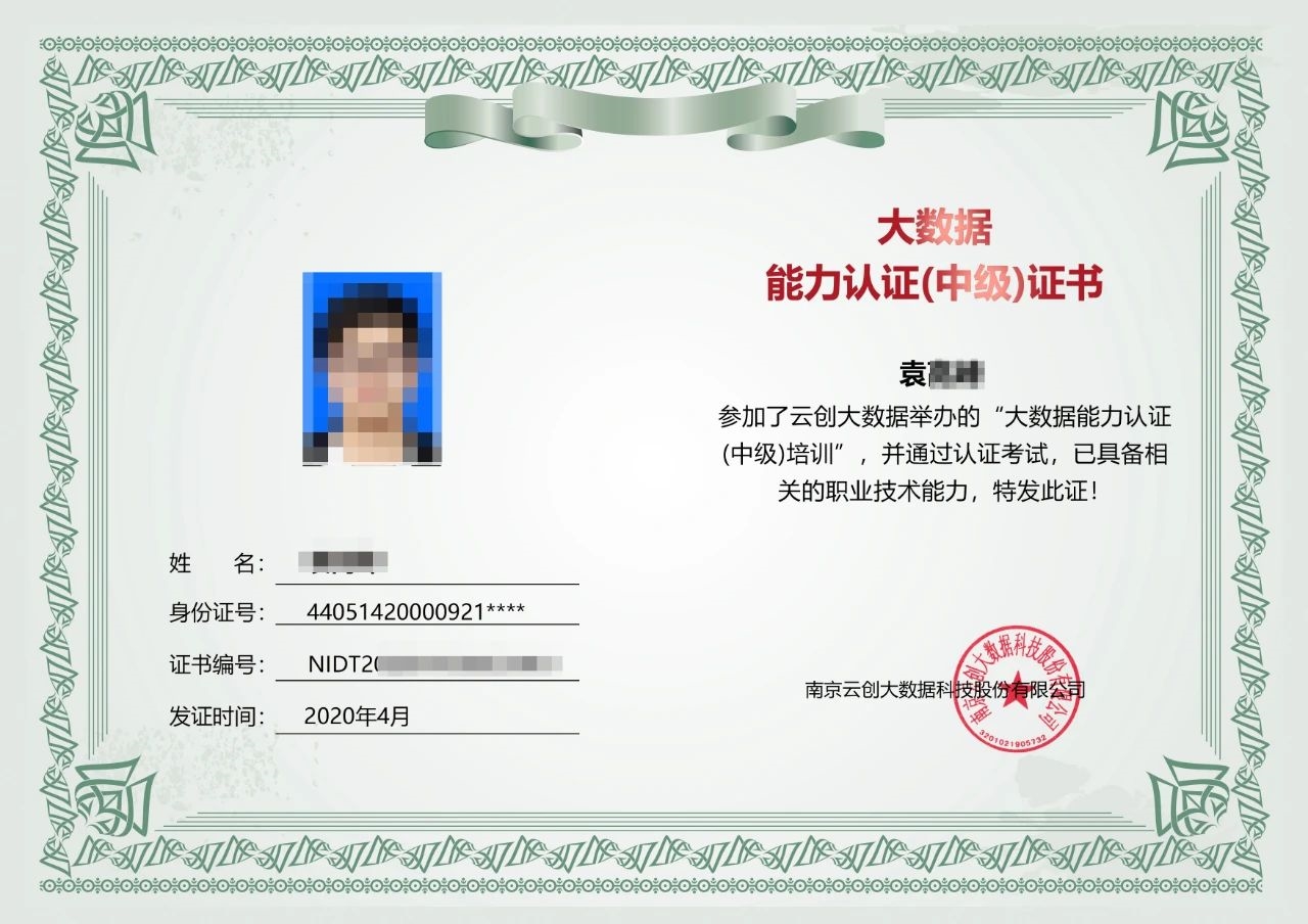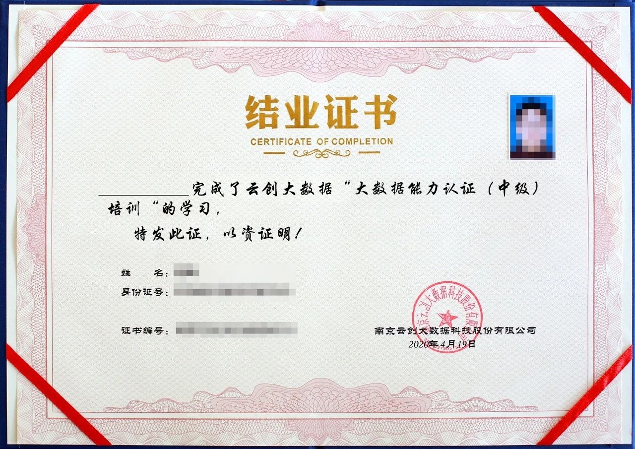 參加本期培訓的每位學員都將獲得結(jié)業(yè)證書,通過認證考試且成績合格的學員,還可獲得“大數(shù)據(jù)能力認證(中級)證書”,該證書可作為專業(yè)技術人員職業(yè)能力考核的證明。培訓結(jié)束后,可在云創(chuàng)大數(shù)據(jù)官方網(wǎng)站查詢到“大數(shù)據(jù)能力認證(中級)證書”的相關信息。隨著認證考試的結(jié)束和培訓班的落幕,以上證書將會陸續(xù)寄送到學員手中。