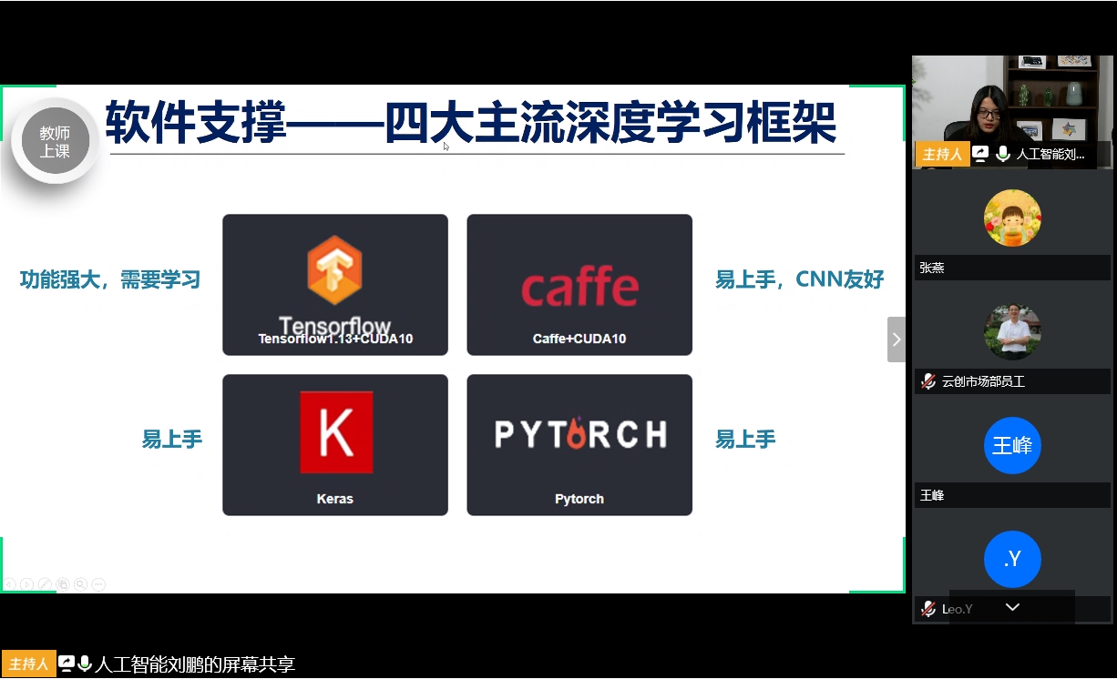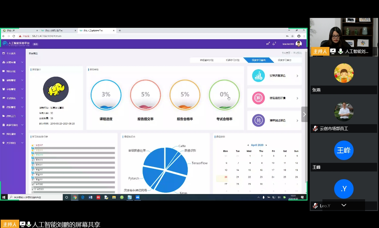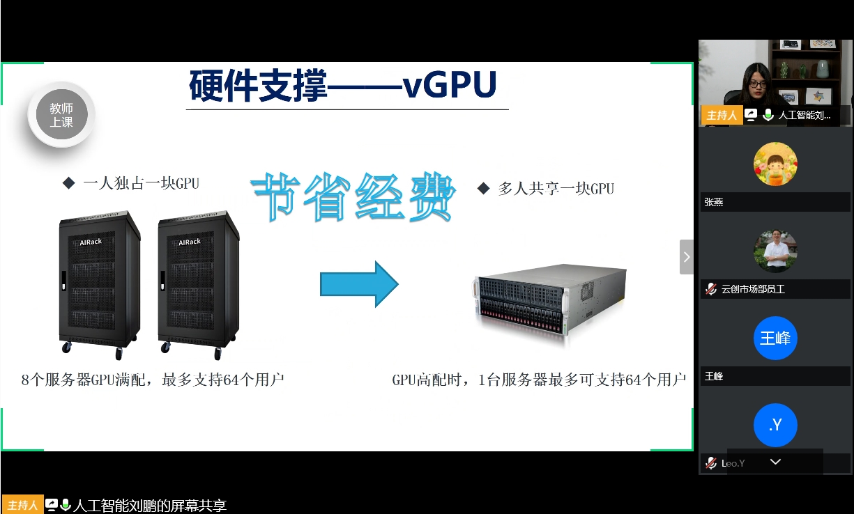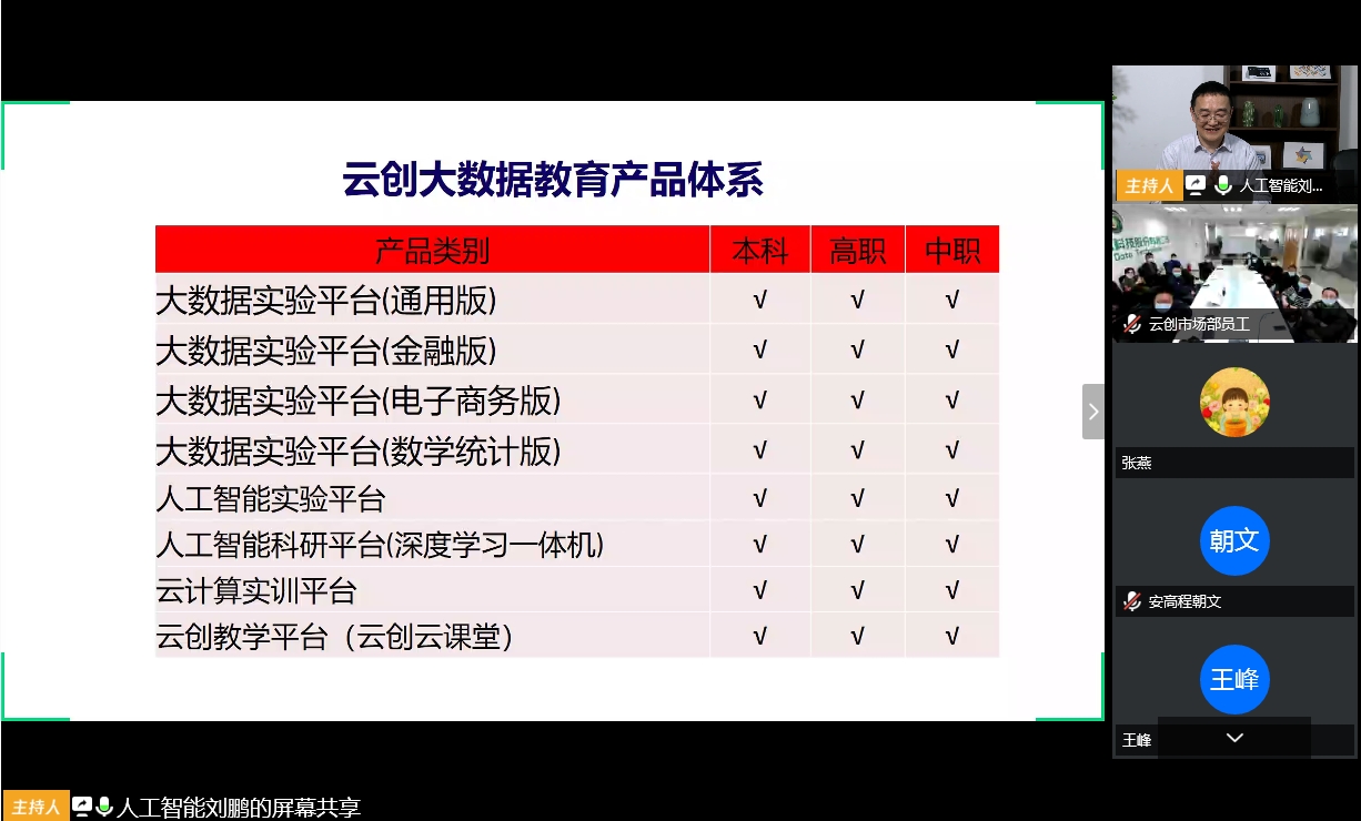 最后,針對此前劉鵬教授介紹的云創學習工場平臺,楊震宇經理進行了細致的講解與演示,包括平臺課程、積分、云點等,并通過具體課程內容梳理和導學視頻,使在線合作伙伴對云創學習工場平臺建立了更為直觀系統的認識,相信通過云創學習工場平臺體系的系統訓練,可向社會輸出更多高水平的大數據與人工智能人才。