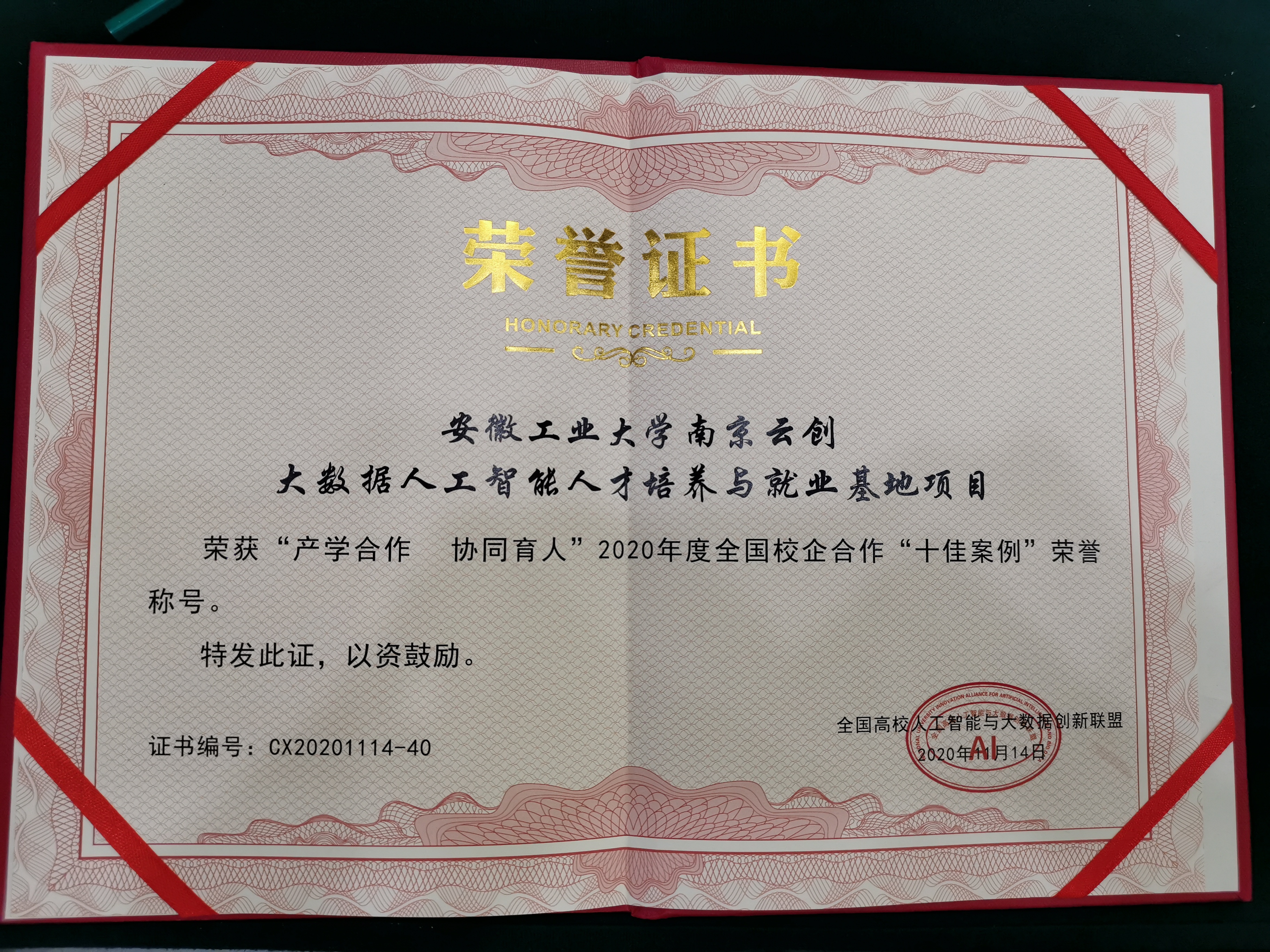 在榮譽頒獎環節,包括人物創新獎、學術創新獎、教學創新獎、人工智能創新高校獎、大數據創新高校獎等在內的9個獎項依次頒出。云創大數據與安徽工業大學合作的大數據人工智能人才培養與就業基地項目斬獲了“‘產學合作 協同育人’2020年度全國校企合作‘十佳案例’”殊榮。