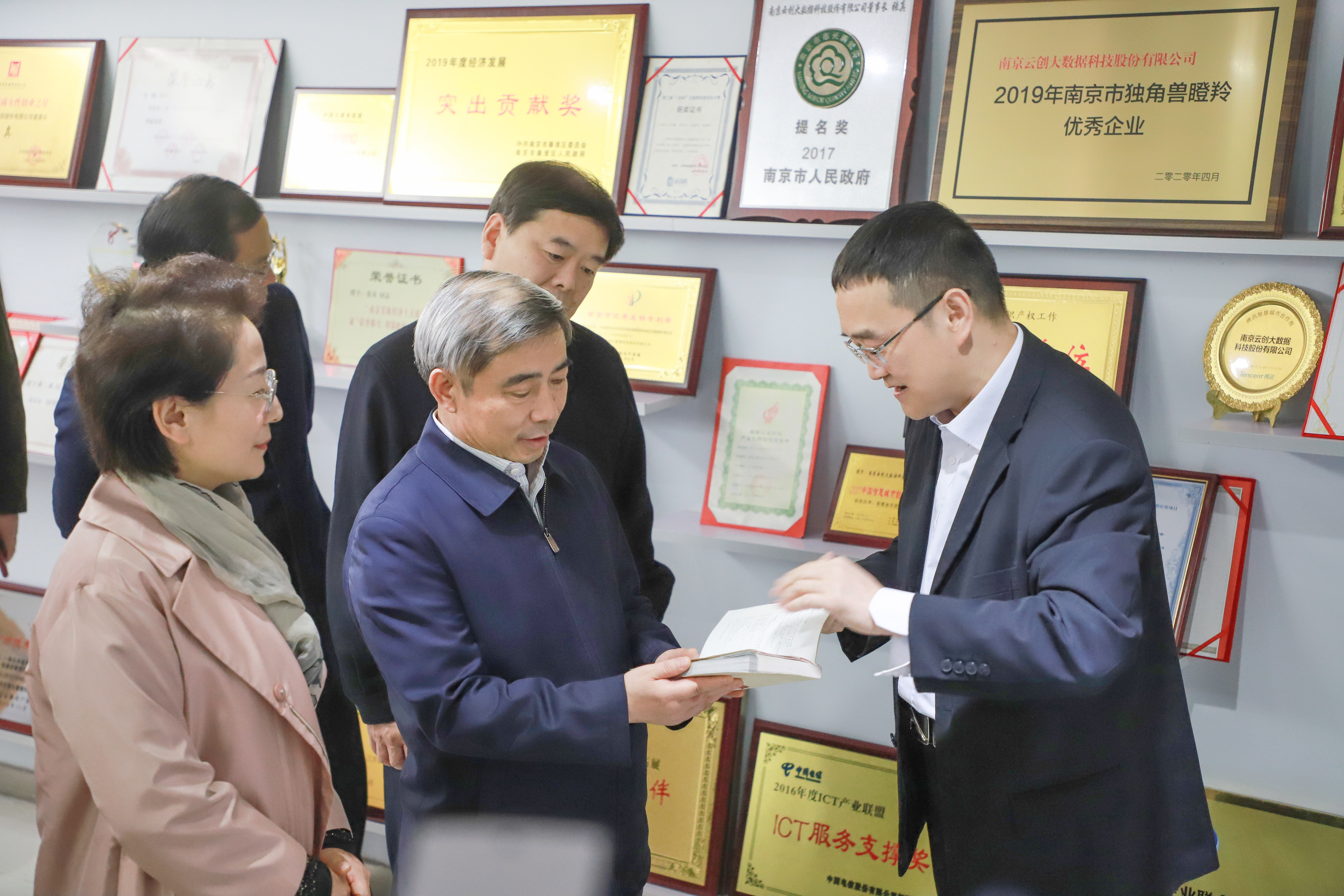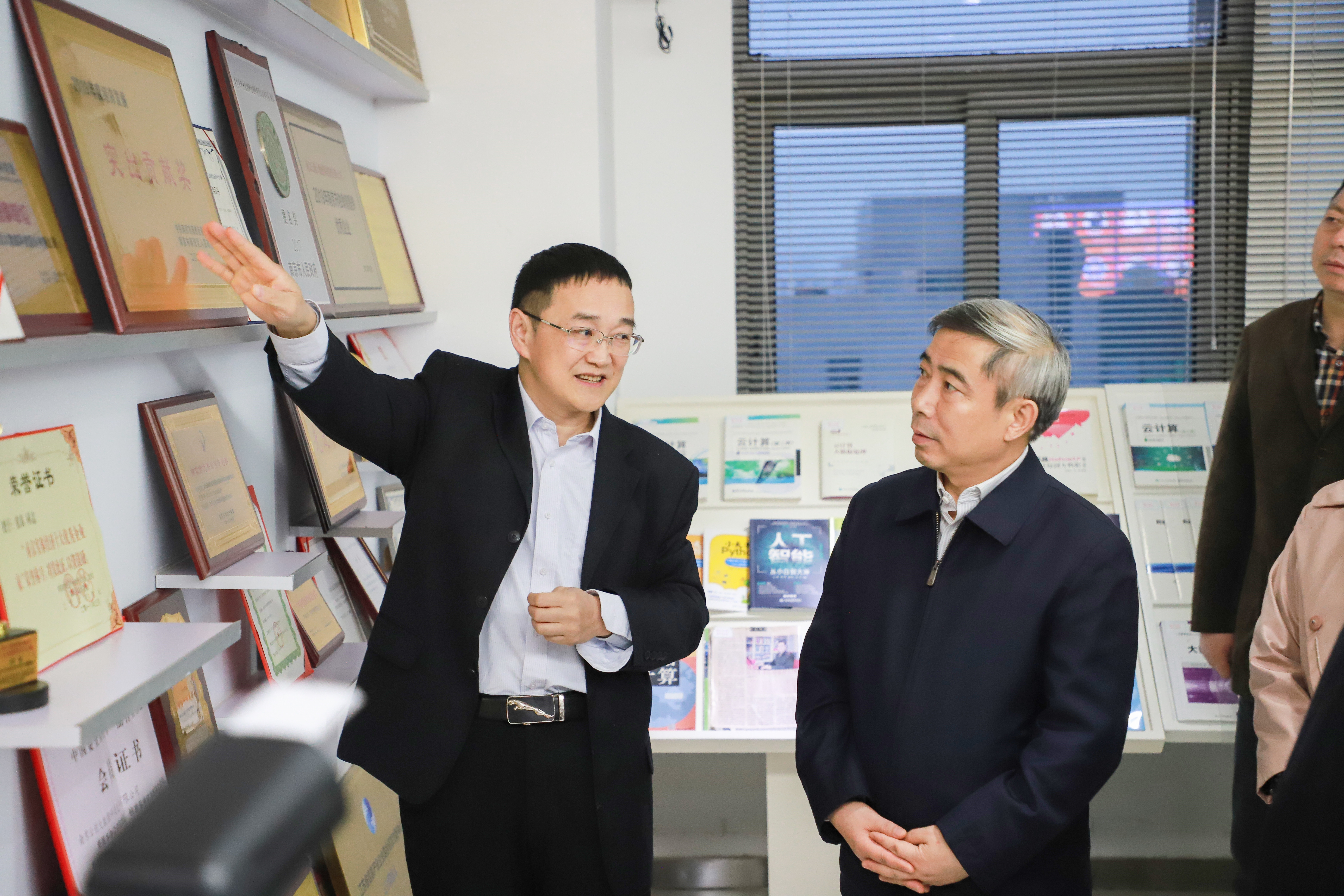 在調研行程中,云創大數據總裁劉鵬教授進行了接待。劉鵬教授一邊帶常正國副部長進行參觀,一邊向其介紹云創的創新技術、榮譽資質、產品應用和成功案例等企業信息。值得一提的是,云創的技術實力和不俗成績收獲常正國副部長的高度好評。