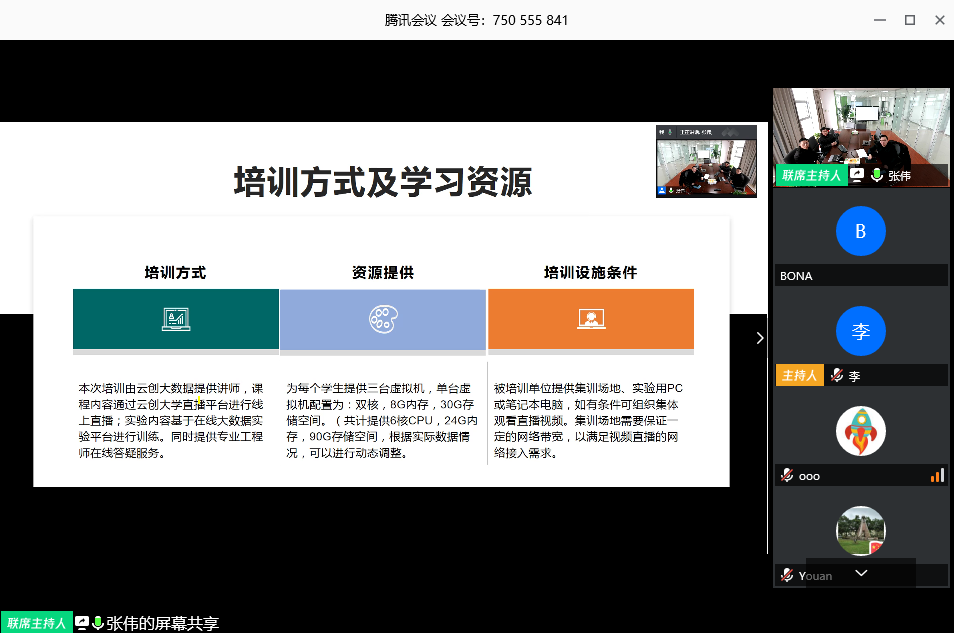12月1日上午,云創大數據舉辦了“全國高校大數據實訓研討會”,全國高校領導、專業教師和教育培訓行業同仁通過騰訊會議參與其中。
