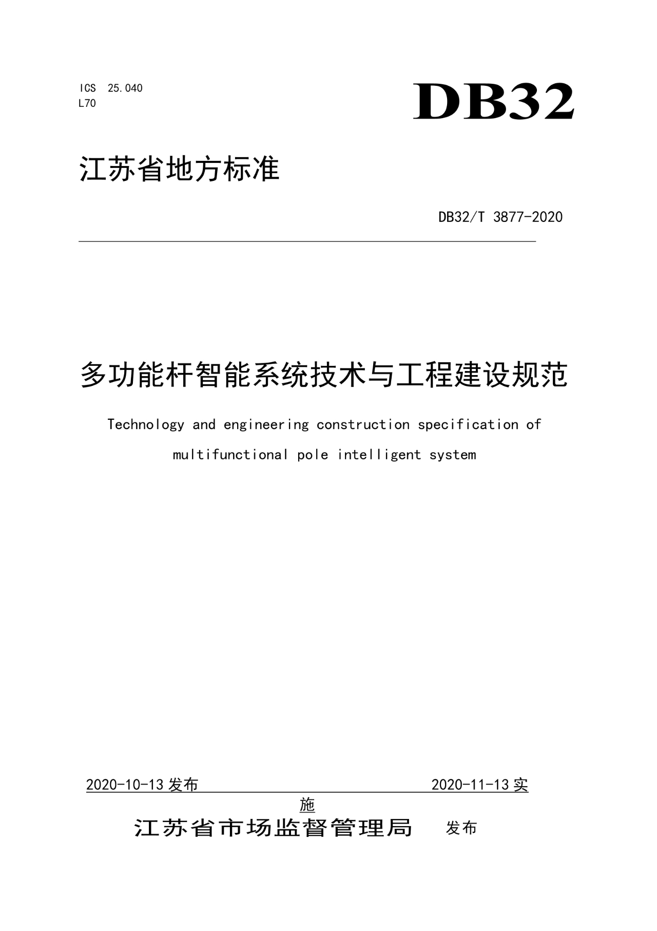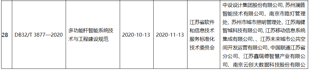 日前,江蘇省市場監督管理局發文“江蘇省地方標準發布公告(2020年第18號)”,公布了2020年第十七批江蘇省地方標準目錄,由云創大數據參與編寫的《多功能桿智能系統技術與工程建設規范》(DB32/T 3877-2020)等在內的58項江蘇省地方標準面向社會正式發布。