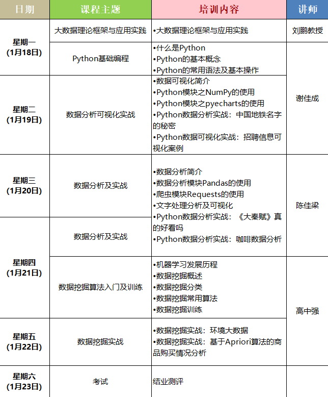 為了提升高校老師的大數據教學科研與實戰水平,茲定于1月18日-23日舉辦“2021年全國高校大數據師資高級研修班”。本次培訓由南京云創大數據科技股份有限公司舉辦。研修班緊貼大數據專業教學科研實際,旨在滿足高校學科建設和課改需求,進一步幫助高校老師提升相關能力。