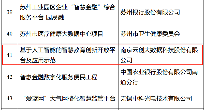 1月25日,江蘇省工業(yè)和信息化廳對(duì)2020年智慧江蘇重點(diǎn)工程名單進(jìn)行了公示,憑借深厚的技術(shù)積淀與創(chuàng)新的探索實(shí)踐,云創(chuàng)大數(shù)據(jù)“基于人工智能的智慧教育創(chuàng)新開(kāi)放平臺(tái)及應(yīng)用示范”入圍公示名單。