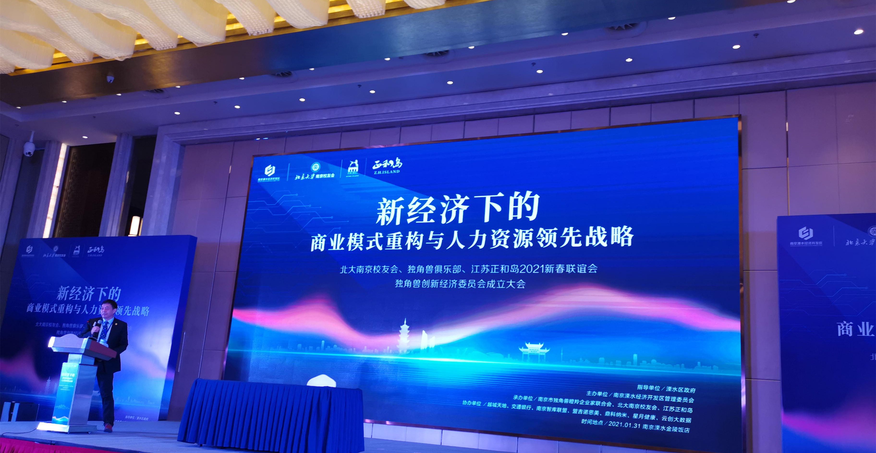 為進一步應對新冠肺炎疫情對我國經濟的沖擊,尋求“不確定因素”下企業發展的新路徑,加速推動一大批高成長性獨角獸企業從新經濟的浪潮里脫穎而出,1月31日,北大校友會、獨角獸俱樂部、江蘇正和島2021新春聯誼會暨獨角獸創新經濟委員會成立大會在南京溧水金陵飯店舉辦。與會嘉賓齊聚一堂,共話發展,共謀機遇。