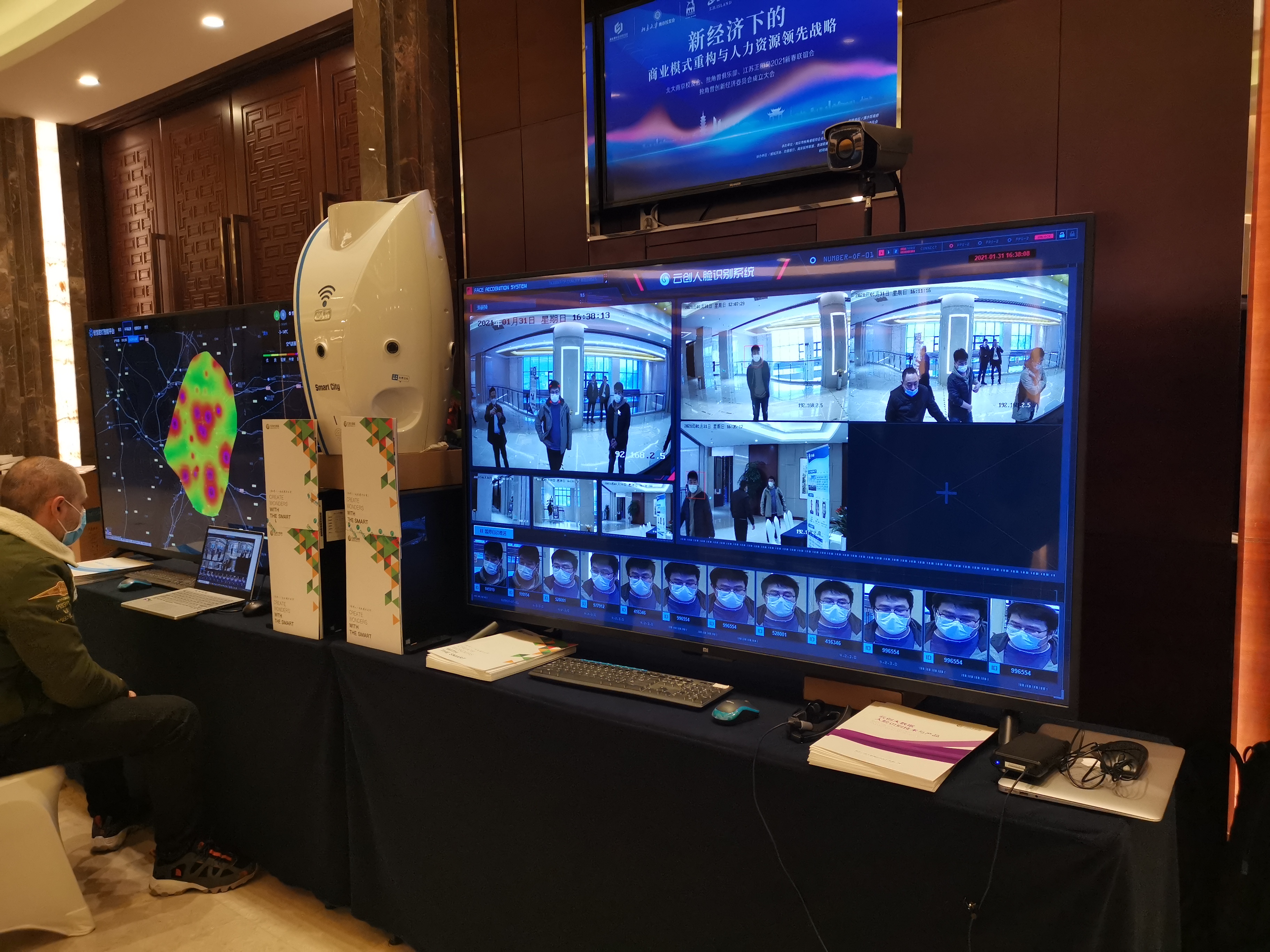 此外,云創大數據的創新技術和典型成果也在活動會場得以展示。其中,智慧路燈伴侶和人臉識別系統憑借創新的技術應用和不俗的市場評價,吸引了不少參會來賓的駐足了解。云創代表與大家圍繞商務技術等方面的合作進行了深入的交流。