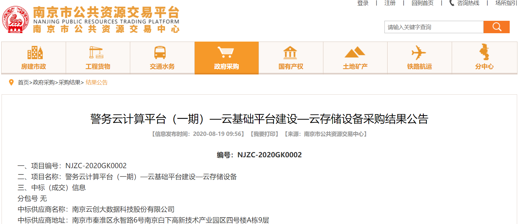 此前,南京市公共資源交易中心公布了警務云計算平臺(—期)—云基礎平臺建設一云存儲設備采購中標結果,云創大數據憑借cStor超融合云存儲系統軟件V5.0成功入選。本次集采將主要應用于南京市公安局警務云計算平臺項目中對存儲性能、可靠性、穩定性等存在較高要求的關鍵業務。