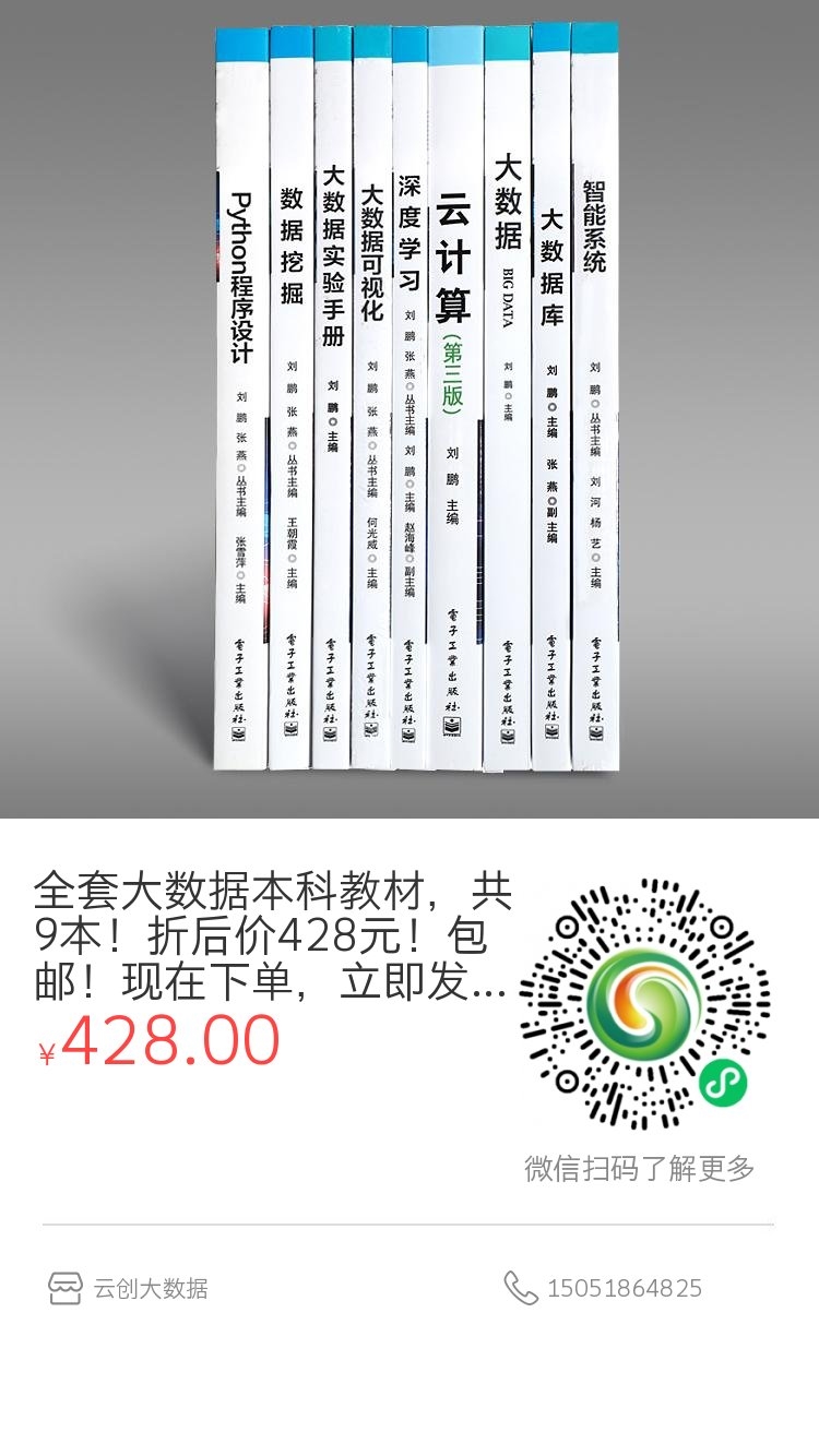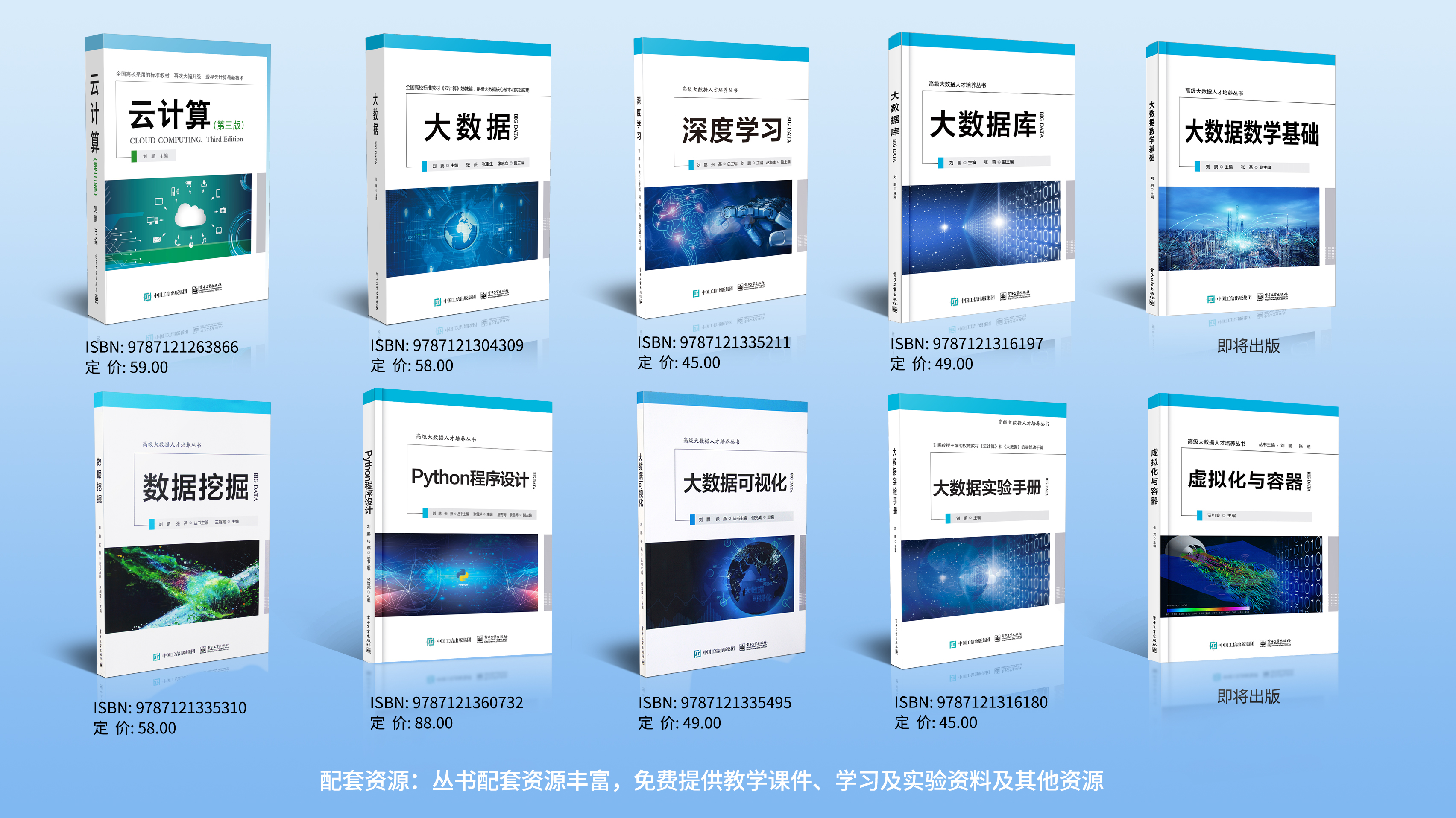 具體而言,該叢書包含《云計算》、《大數(shù)據(jù)》、《深度學習》、《大數(shù)據(jù)庫》、《大數(shù)據(jù)數(shù)學基礎》、《數(shù)據(jù)挖掘》、《Python程序設計》、《大數(shù)據(jù)可視化》、《大數(shù)據(jù)實驗手冊》、《虛擬化與容器》。其中,《云計算》長年名列中國計算機圖書被引用量前列,據(jù)知網(wǎng)評價微信公眾號(微信號:cnkipj) 《【工學】高被引圖書前三甲,你讀過嗎?》 報道,2010年至2014年《云計算》位居中國高被引圖書自動化技術、計算機技術類別第一名。