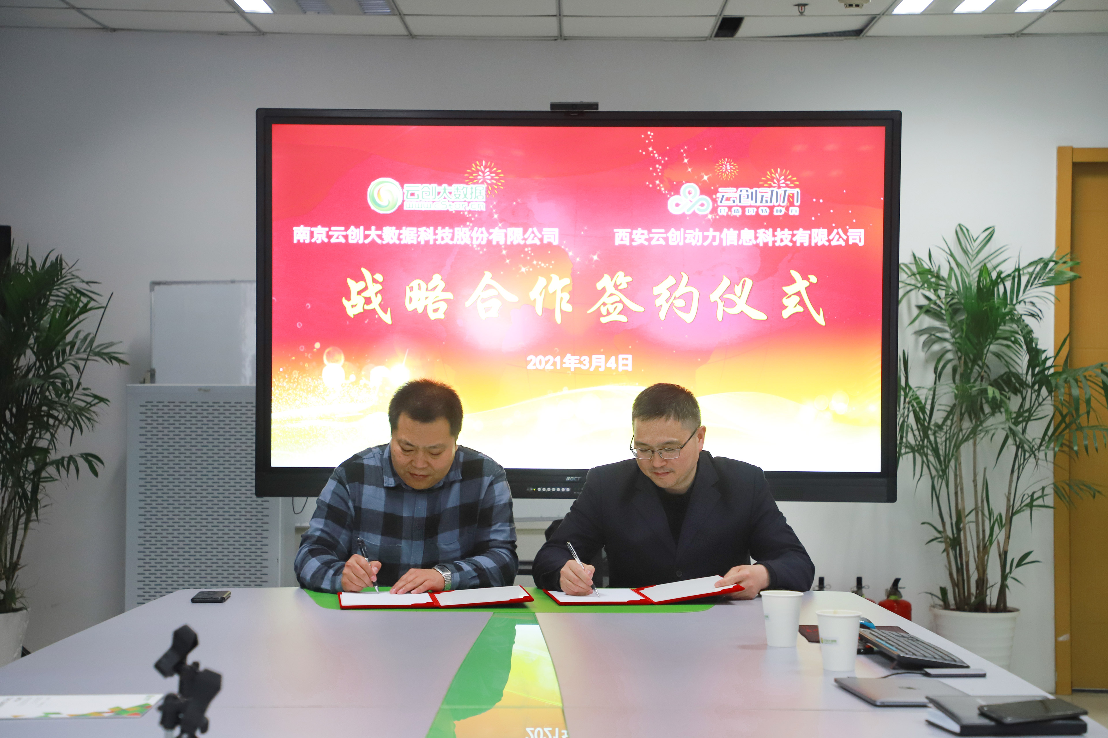 3月4日,南京云創大數據科技股份有限公司與西安云創動力信息科技有限公司正式簽訂戰略合作協議。云創動力總經理王書永與云創多位代表參加了本次簽約儀式。