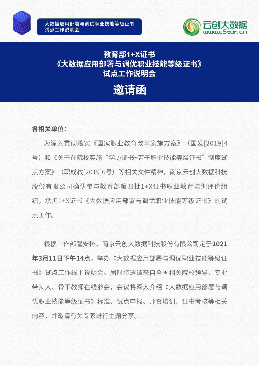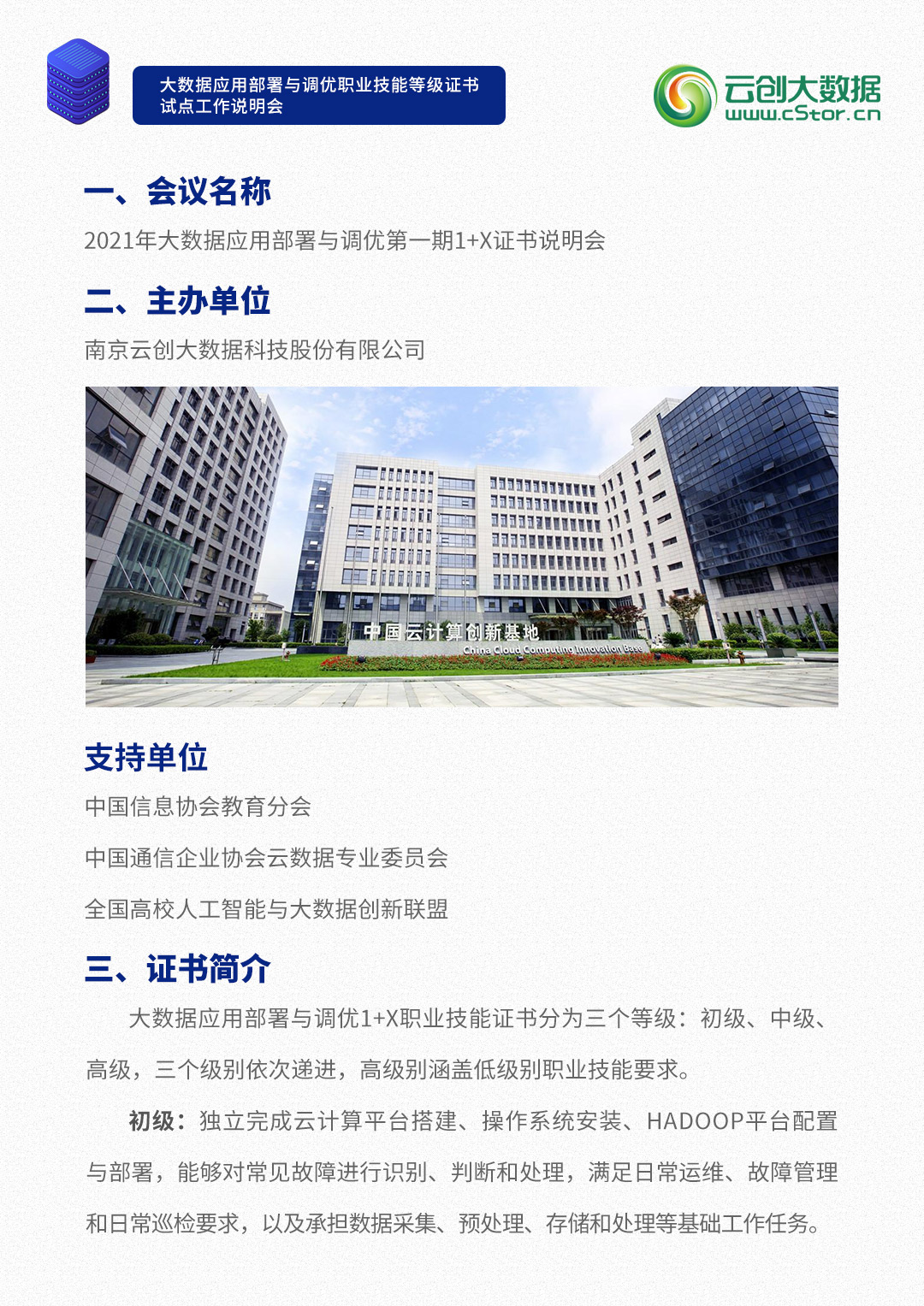 關(guān)于舉辦2021年大數(shù)據(jù)應(yīng)用部署與調(diào)優(yōu)第一期1+X證書說明會的通知