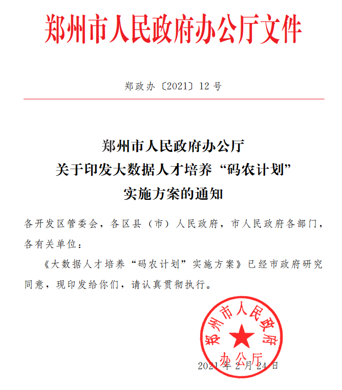 近日,鄭州市人民政府辦公廳印發《大數據人才培養“碼農計劃”實施方案》,并要求力爭用3年左右時間,共建一批現代產業學院和高水平實訓基地,為鄭州市大數據產業儲備10萬名有專業技術水平和實踐操作經驗的人才,加快推進全市大數據產業發展。