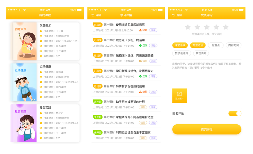 平臺增設小程序端,實時展示不同的課程信息。家長通過學生信息登陸小程序后可以參照課程特色、課時安排以及學生的個人情況選擇不同課程,課程選擇輕松快捷、省時省力。同時,課后家長還可進行課程評價,以助于課程的進一步完善與提高。