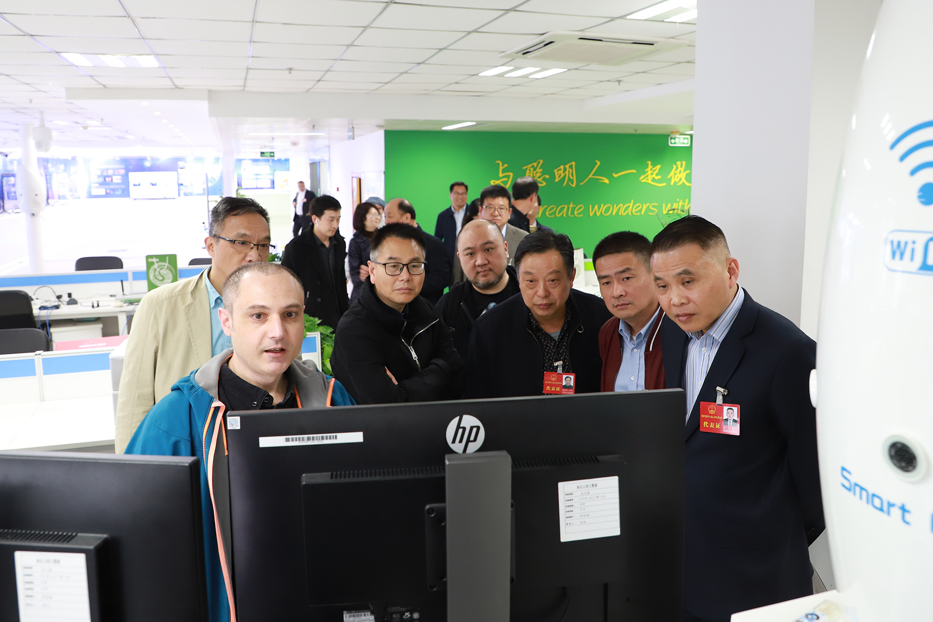 4月22日下午,南京市人大代表秦淮二組到訪云創(chuàng)大數(shù)據(jù)參觀交流,總裁劉鵬教授熱情接待了來賓。此次到訪,來賓旨在通過對云創(chuàng)進(jìn)行參觀考察,近距離感受信息科技的獨(dú)特魅力,為日后的工作提供新思路和新方向。