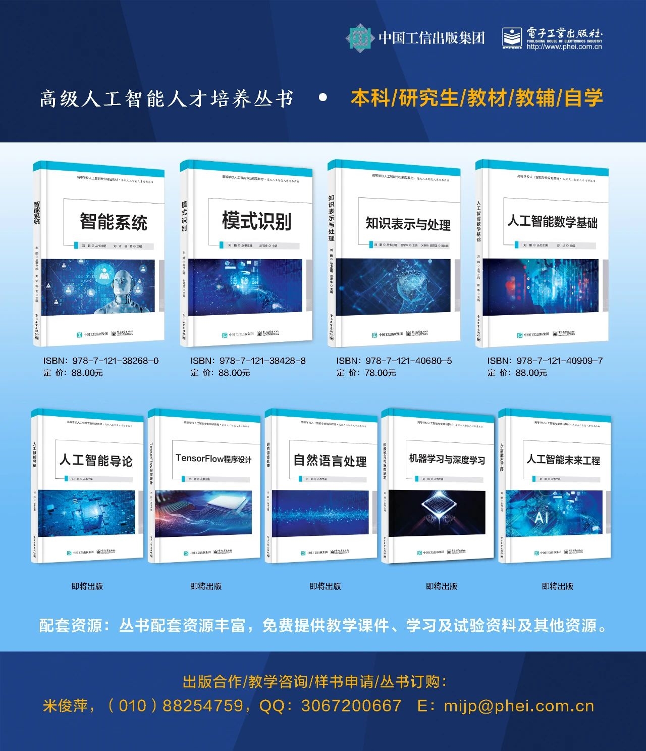 《自然語言處理》、《TensorFlow程序設計》、《人工智能導論》、《人工智能未來工程》、《機器學習與深度學習》等分冊也將陸續出版,歡迎大家持續關注。