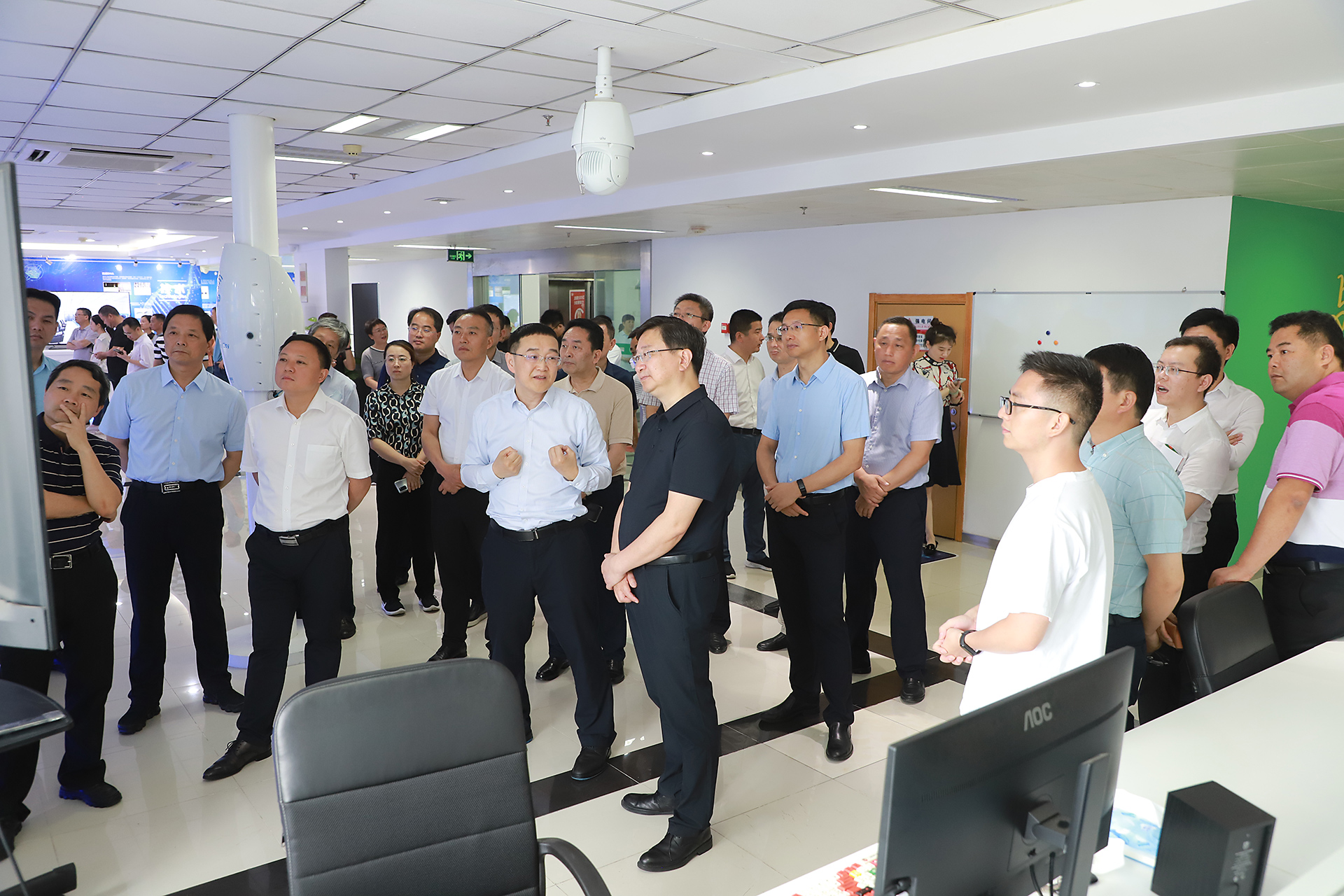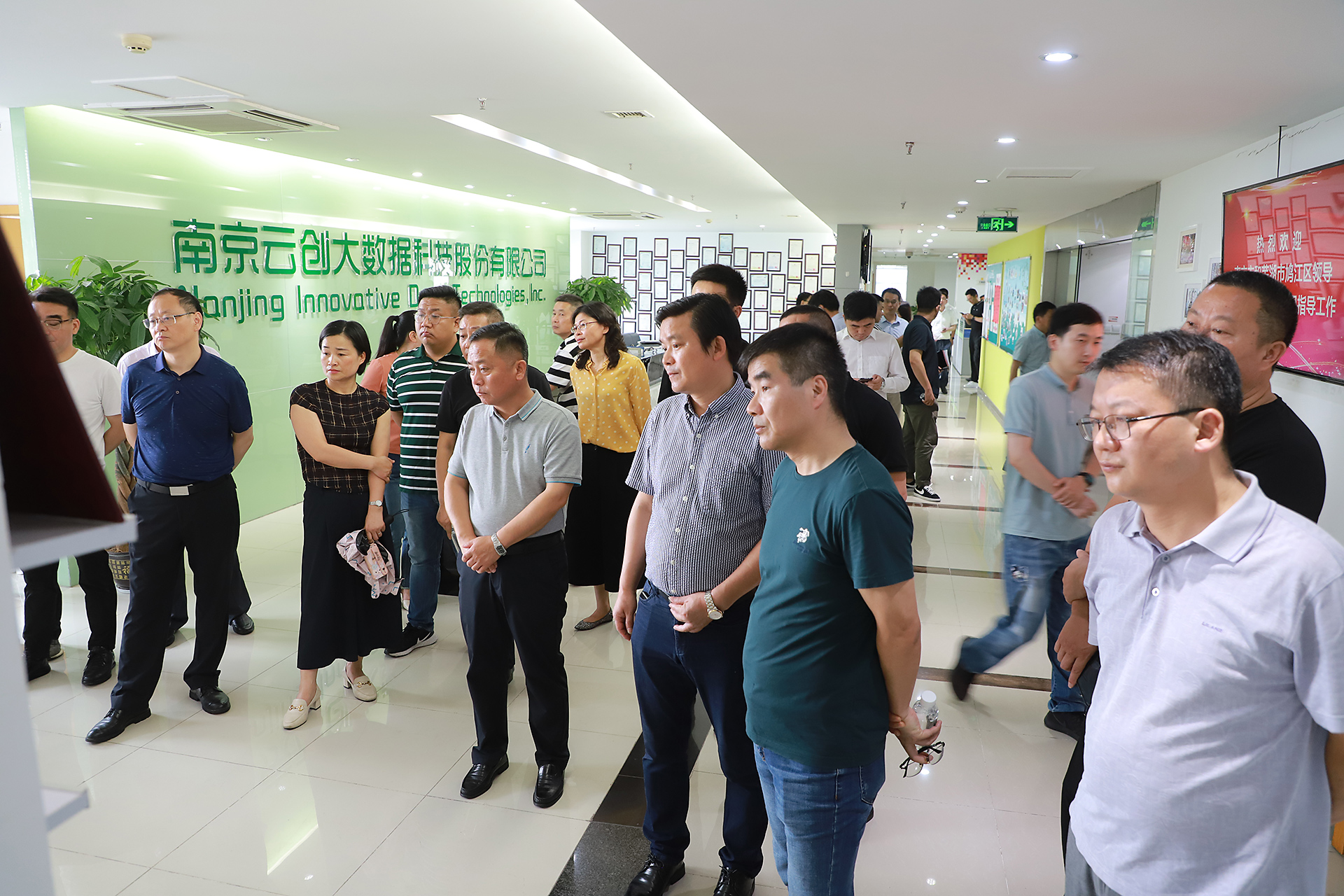 6月29日上午,蕪湖市鳩江區黨政代表團在南京市秦淮區進行參觀考察交流。10時5分許,包括區委方忠書記在內的鳩江區黨政代表團,以及秦淮區委辦、科技局主要負責同志,白下高新區管委會相關處室主要負責同志共計70余位領導干部來到南京云創大數據科技股份有限公司,總裁劉鵬教授和外聯負責人沈大為分別帶大家進行參觀。