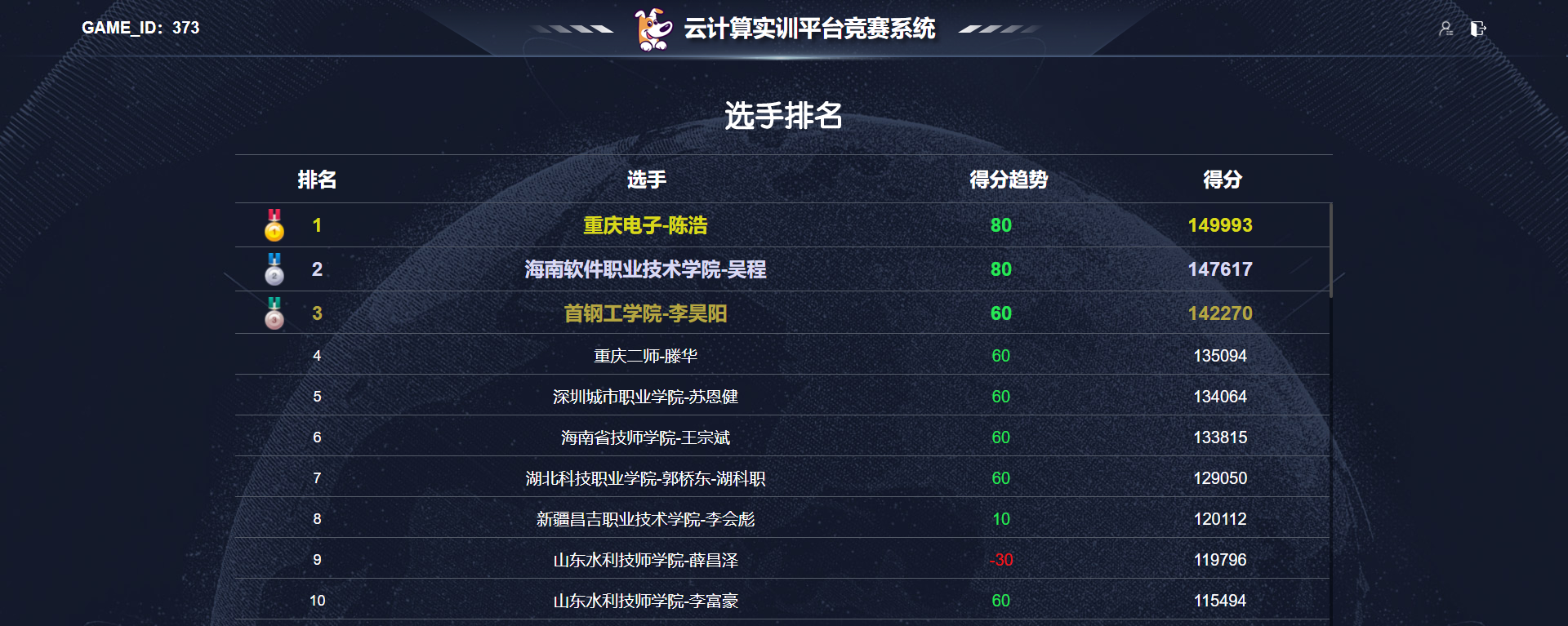 下午,云計(jì)算職業(yè)技能挑戰(zhàn)賽比賽環(huán)節(jié)正式進(jìn)行。100位參賽選手用戰(zhàn)績證明了自己優(yōu)秀的云計(jì)算技能實(shí)力。選手們的成績也通過公屏進(jìn)行了實(shí)時(shí)展示。經(jīng)過激烈角逐,選手排名得以揭曉。一、二、三等獎(jiǎng)前10名選手將獲得云創(chuàng)大數(shù)據(jù)分別送出的1000元獎(jiǎng)金、環(huán)境貓家用甲醛檢測(cè)儀,以及《云計(jì)算(第三版)》書籍等獎(jiǎng)勵(lì)。獲獎(jiǎng)選手名單如下:
